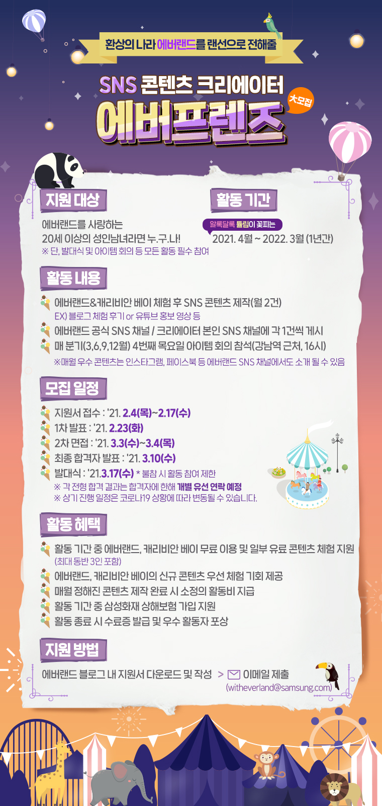에버랜드 '에버프렌즈' 모집에 많은 분들이 지원해주신 점 감사드리며,