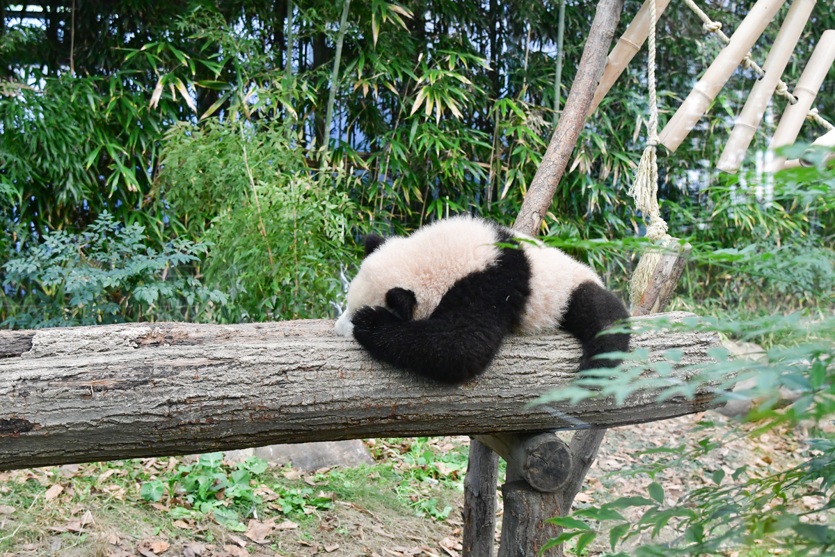 판다월드에서 푸바오가 열심히 운동할 수 있도록