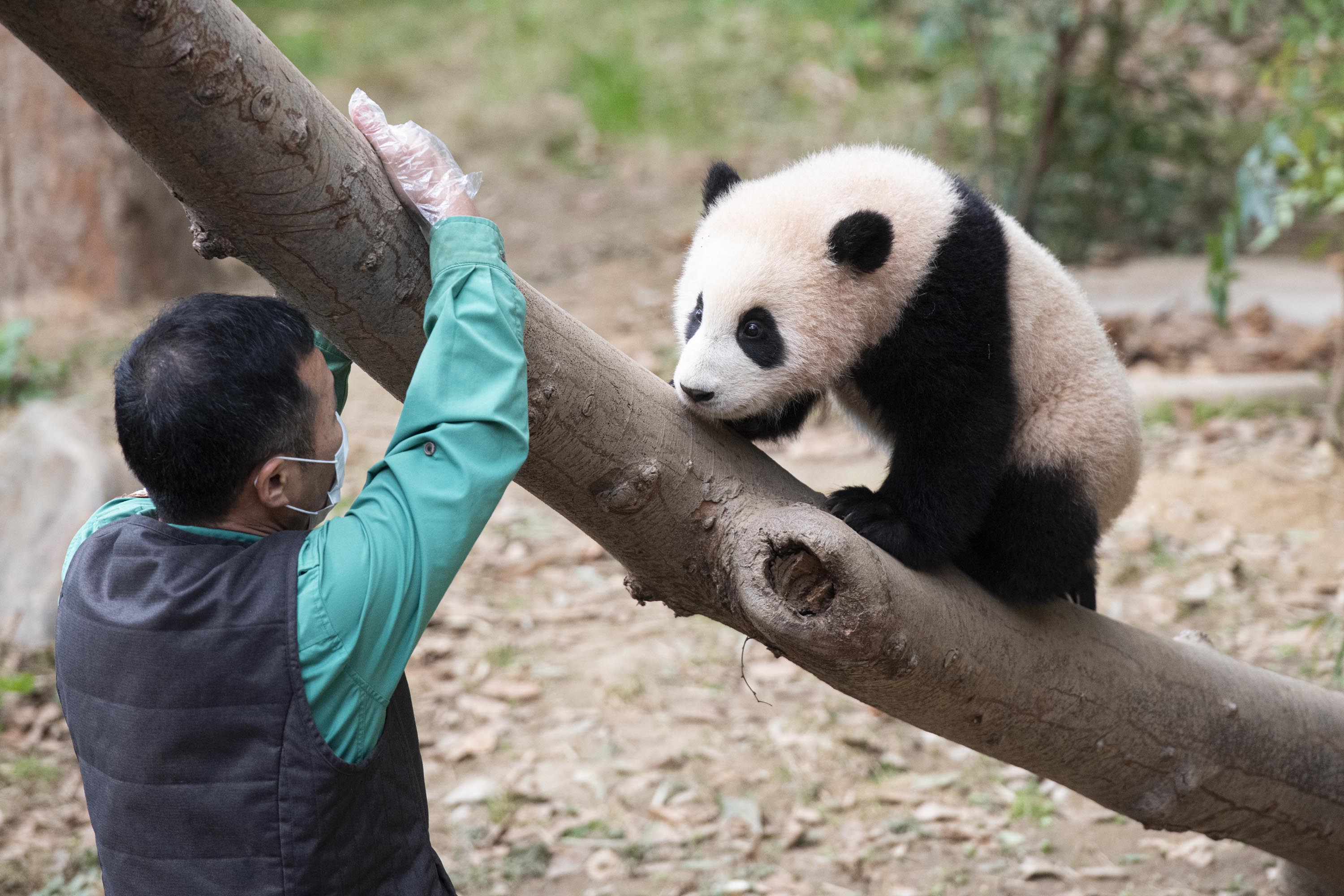 나무 타고 내려오는 걸 도와주다 보면 푸바오가 나무를 끌어안는 앞발과 어깨의 힘이 매우 세졌다는 걸 느낄 수 있고, 대나무 맛보는 행동을 할 때면 송곳니가 돌출되고 있는 모습도 볼 수 있어요.