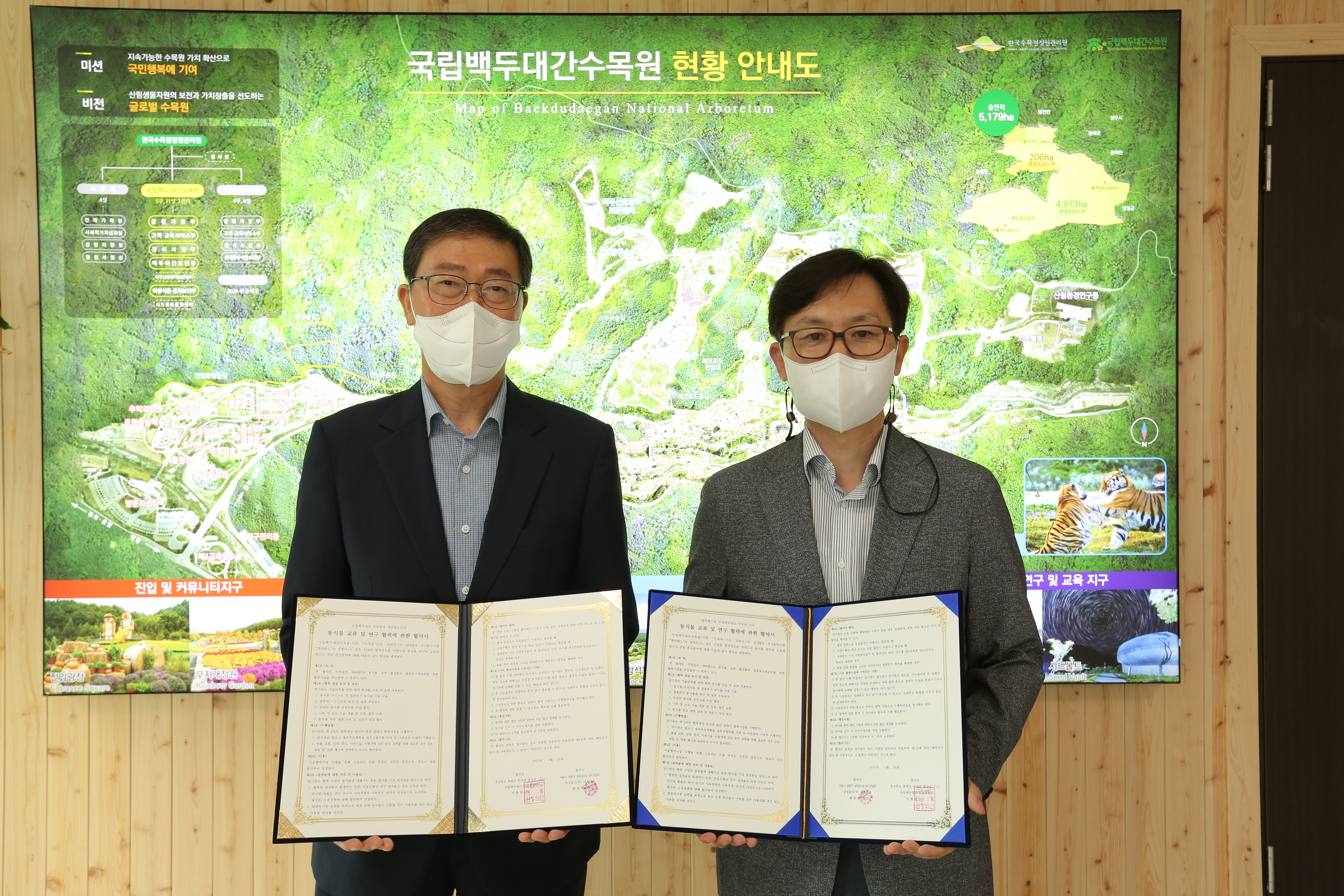 26일 경북 봉화군 국립백두대간수목원에서 진행된 협약식에는 정동희 에버랜드 동물원장, 이종건 국립백두대간수목원장 등 양측 관계자들이 참석했다.