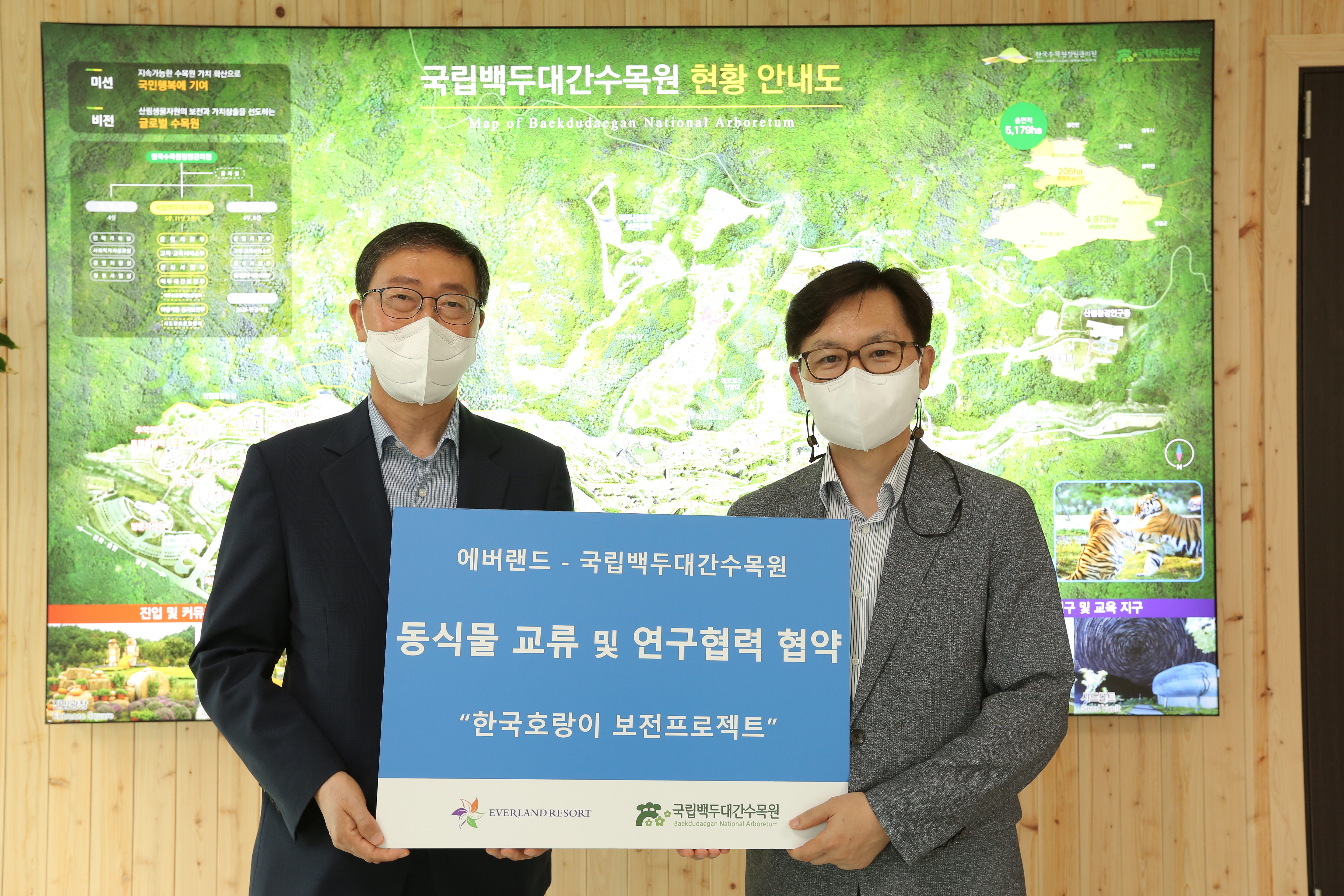 먼저 양측은 에버랜드에 살고 있는 한국호랑이 태범, 무궁 남매의 백두대간수목원 '백두산호랑이보존센터' 유학 프로젝트를 오는 10월 중순 추진하기로 했다.