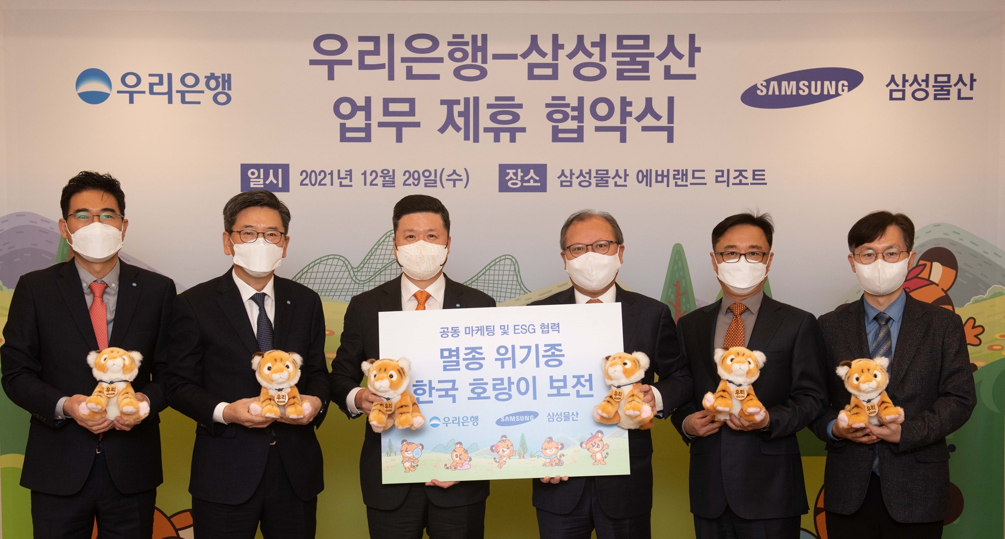 삼성물산 리조트부문(사장 한승환)은 2022년 호랑이해를 맞아 우리은행(은행장 권광석)과 '에버랜드 한국호랑이 공동 마케팅 및 ESG 경영 협력 강화'를 위한 전략적 업무협약(MOU)을 체결했다고 29일 밝혔다.