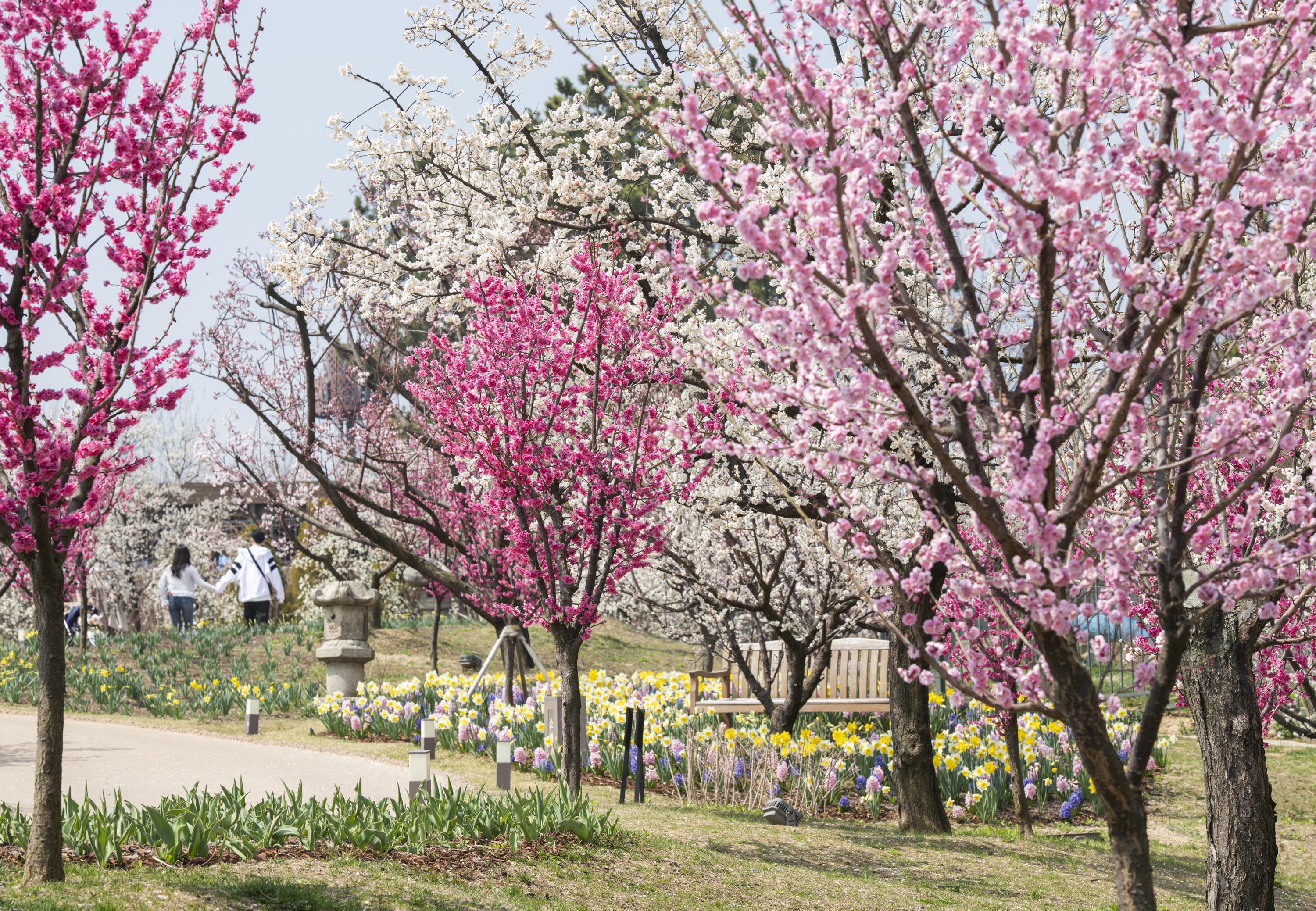 벚꽃 뿐만이 아니다. 현재 하늘정원길에는 만첩매, 율곡매, 용유매 등 11종 700여 그루의 매화나무들이 은은한 매화 향기를 가득 퍼뜨리고 있다.
