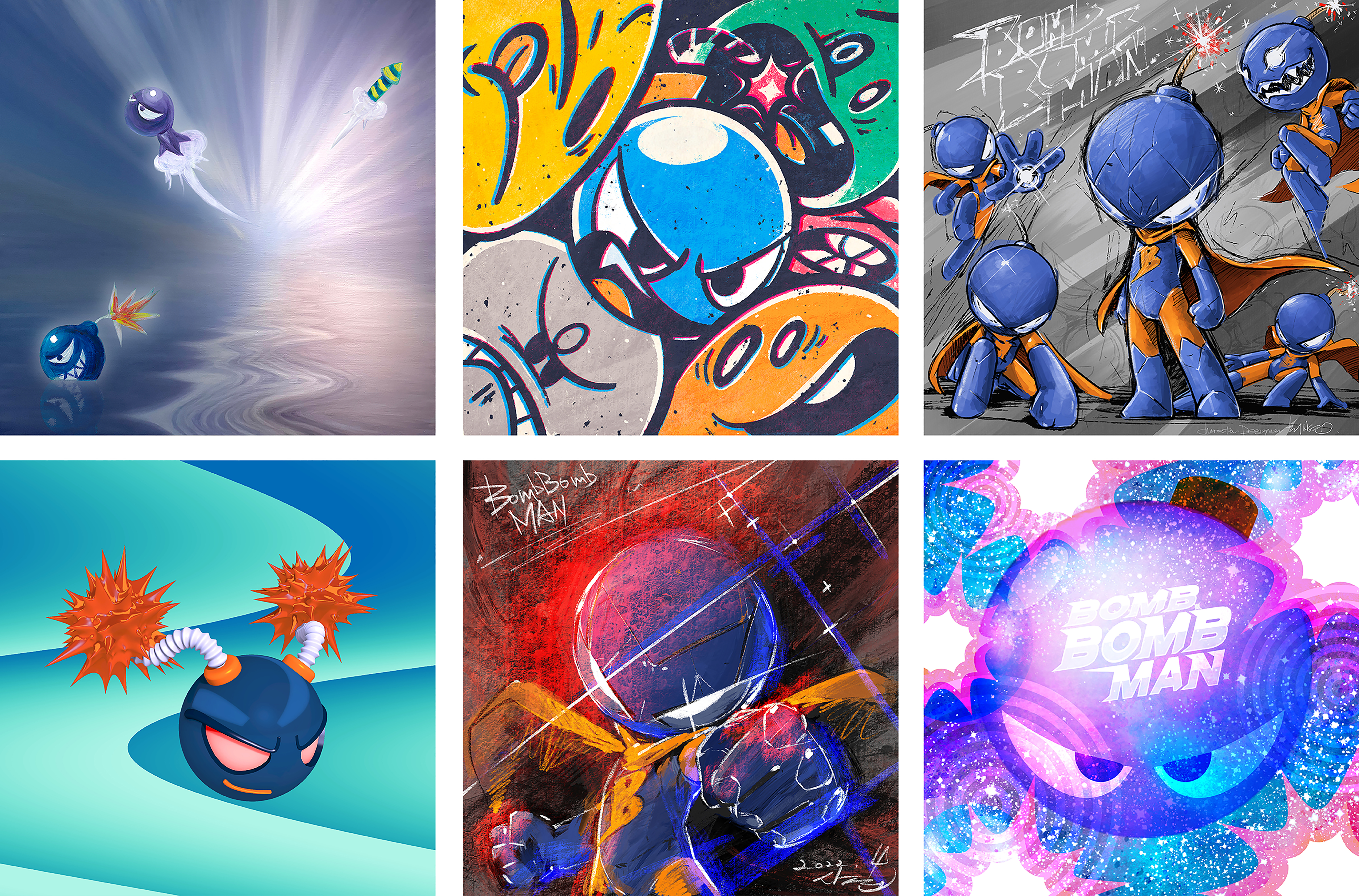 에버랜드 소속 디자이너들과 신진 외부 작가들이 제작했는데 튤립 NFT 프로젝트에도 참여했던 픽셀 아트로 유명한 국립현대미술관 추미림 작가와 더불어 다양한 감정을 유화로 표현한 김허앵 작가, 개성있는 애니메이션 작품으로 참여한 이해강 작가가 밤밤맨을 새로운 시각으로 풀어냈다.