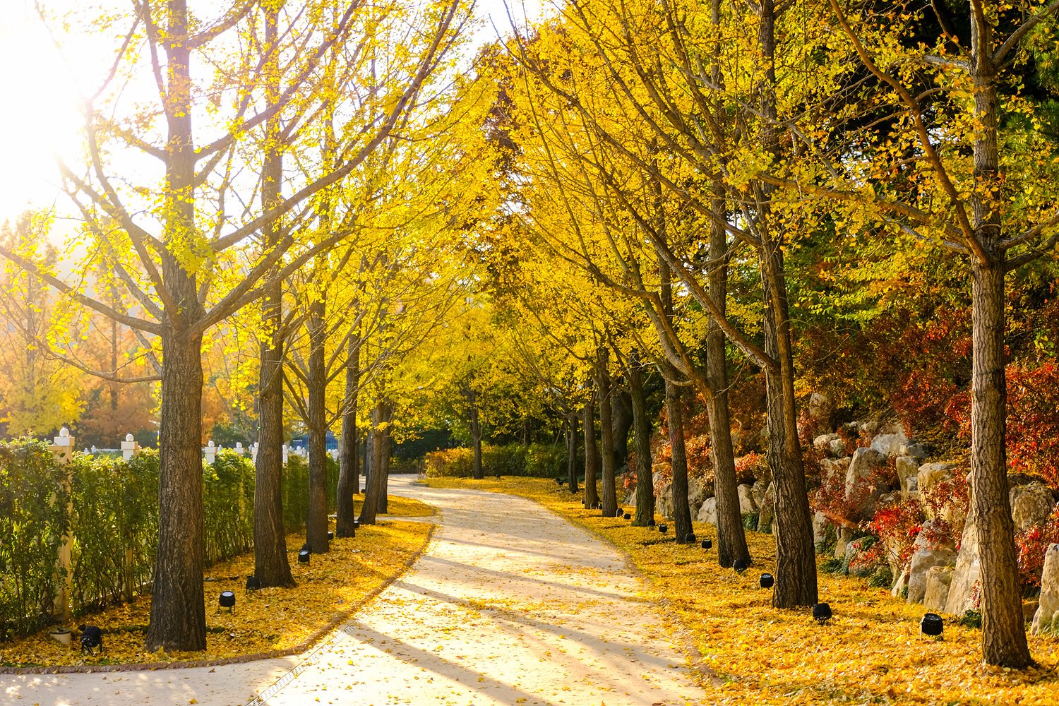 장미원 둘레길을 따라 길게 이어진 「은행나무길」에서는 노랗게 물든 은행나무 아래로 황금빛 단풍 산책을 즐길 수 있으며, 천일홍, 메리골드, 억새 등 약 1천만 송이의 가을꽃이 만개한 「포시즌스가든」도 가을 정취를 만끽하기에 더없이 좋다.