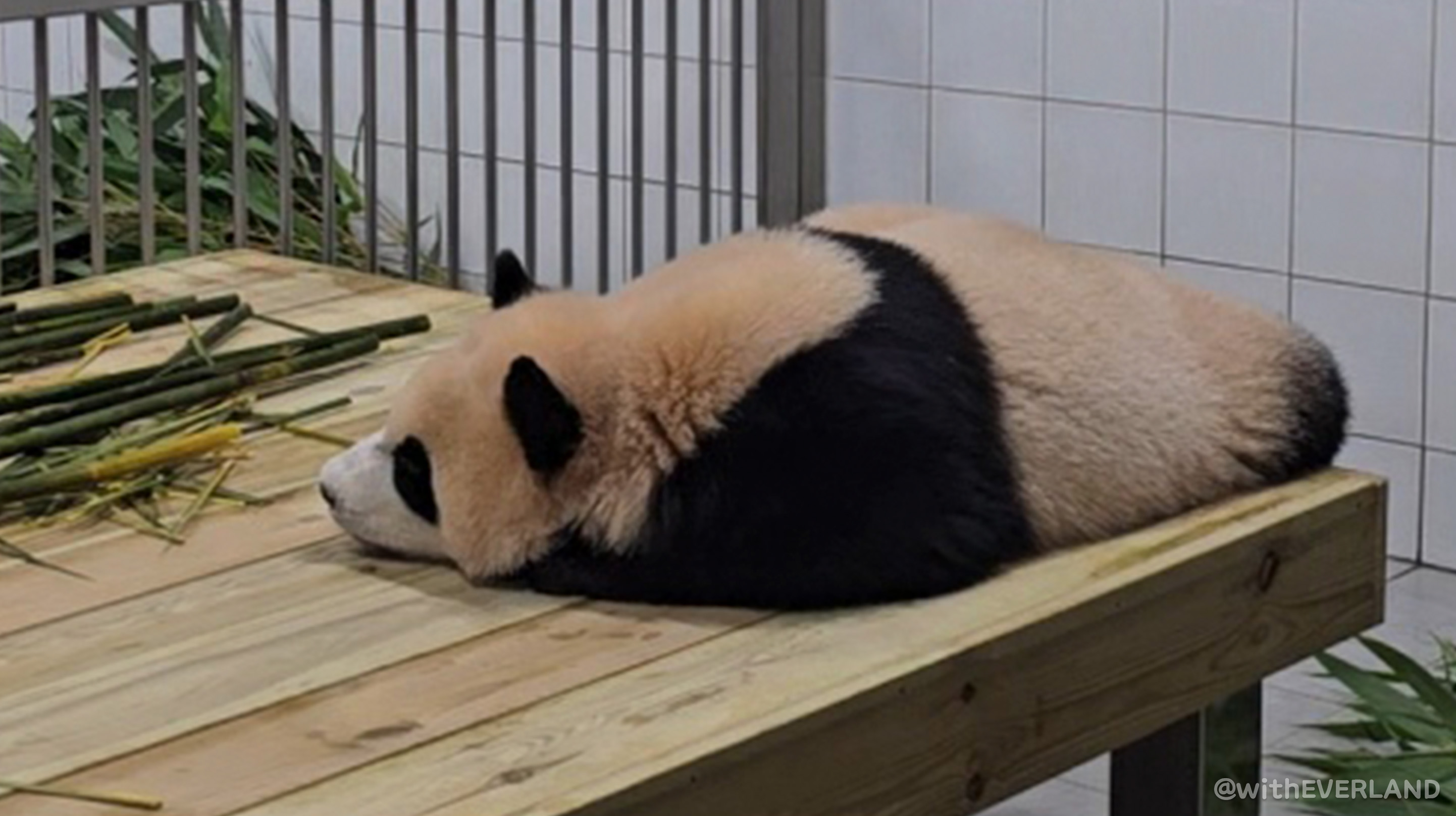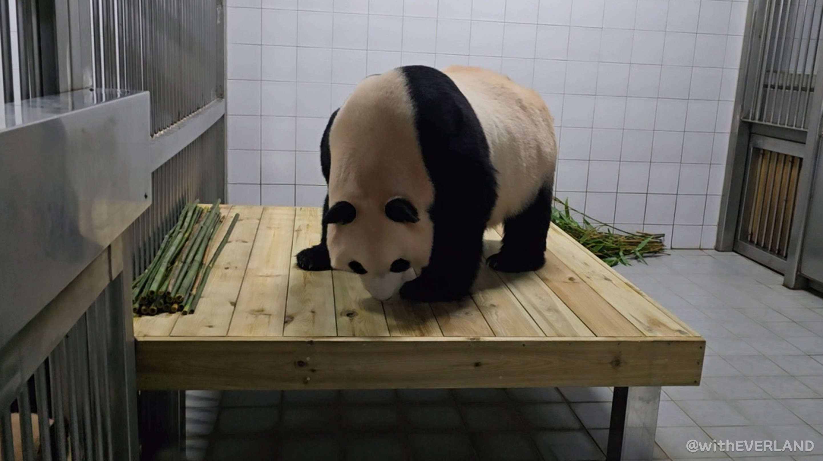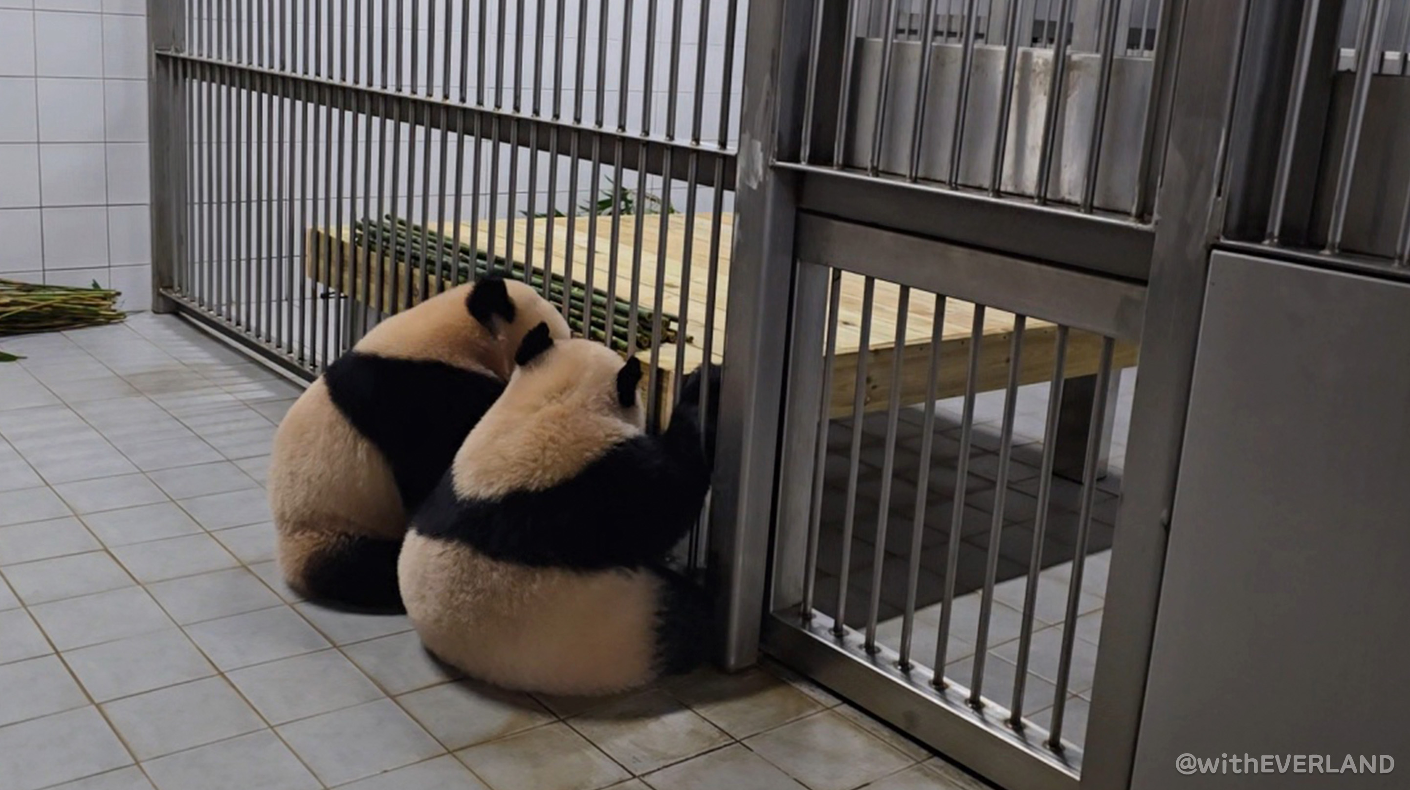 아기들이 놀라지 않게 엄마인 아이바오가 먼저 확인하는 모습을 보여주고, 쌍둥이도 바뀐 새 침대를 만날 수 있게 해주었는데요.