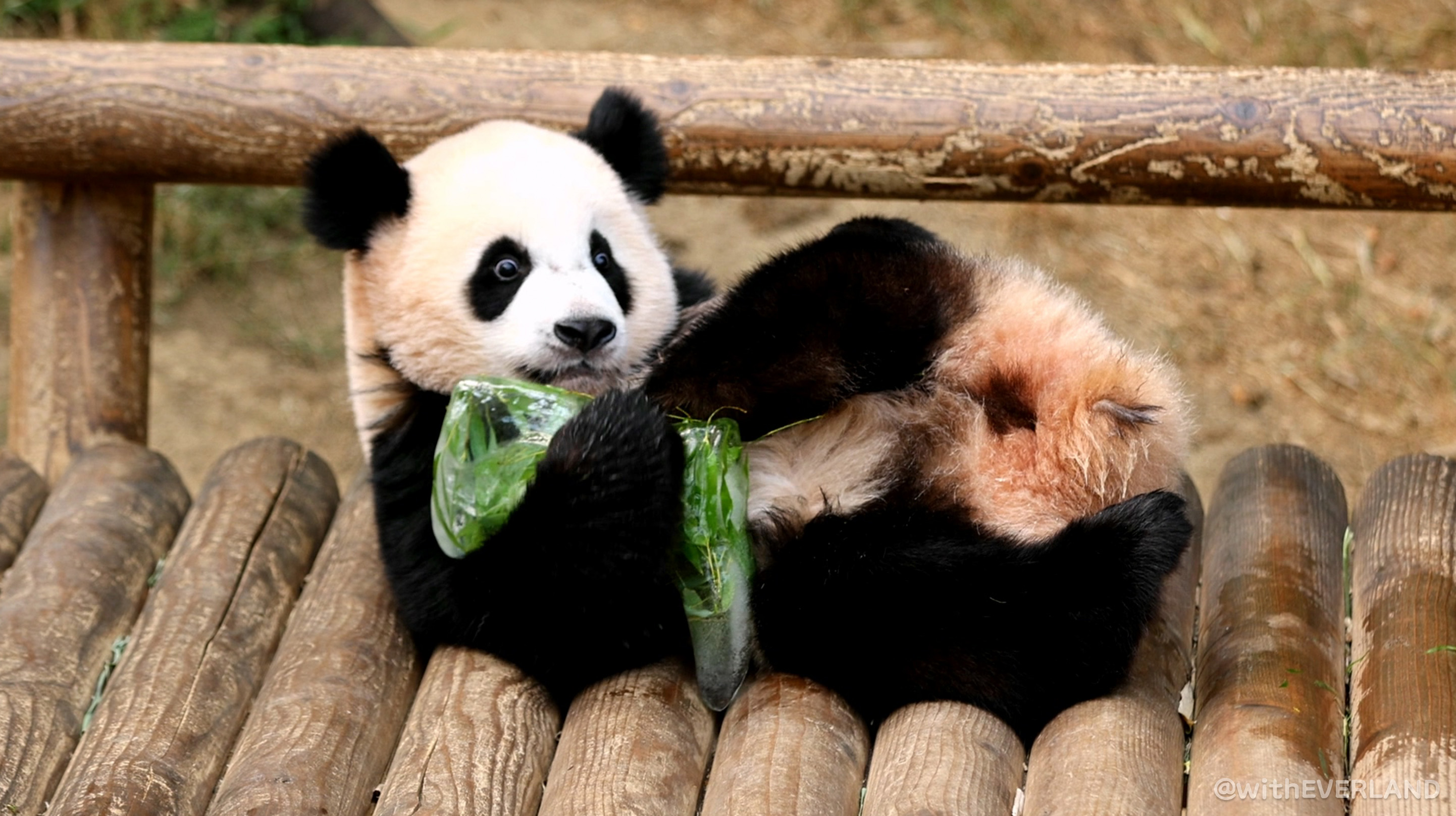더운 날씨에 차가운 촉감이 루이와 후이의 눈빛을 반짝반짝 빛나게 해주었는데요.