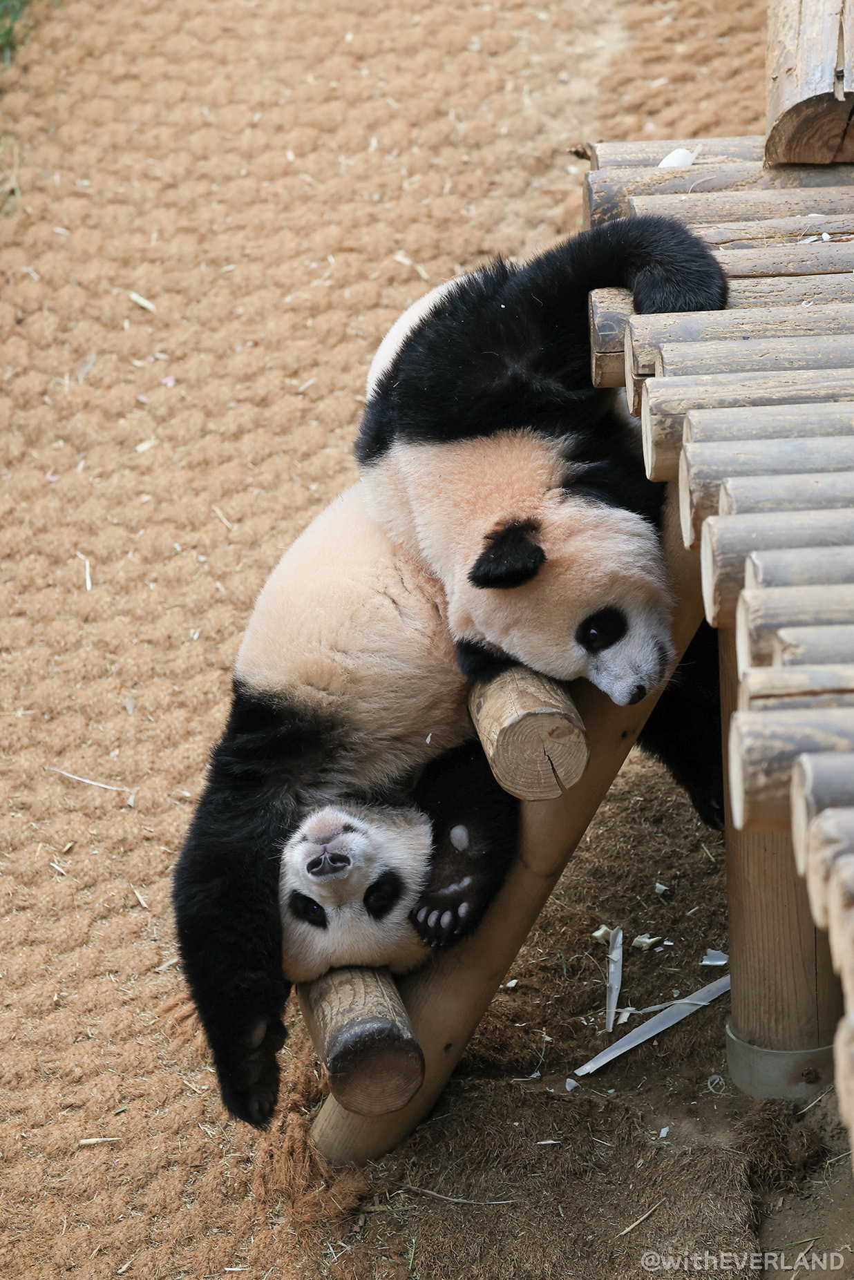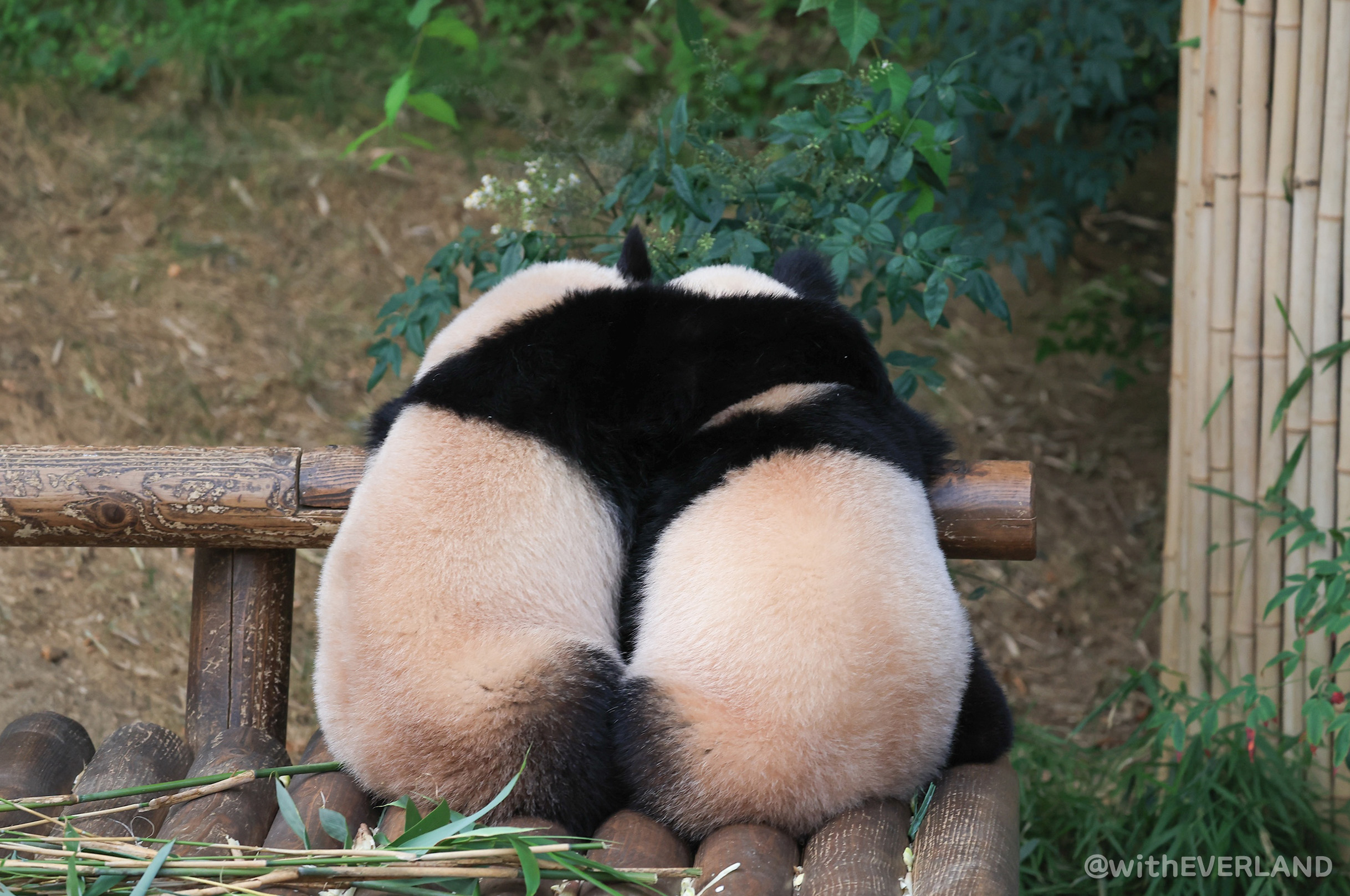 특히 후이바오는 아빠인 러바오와 똑같은 자세로