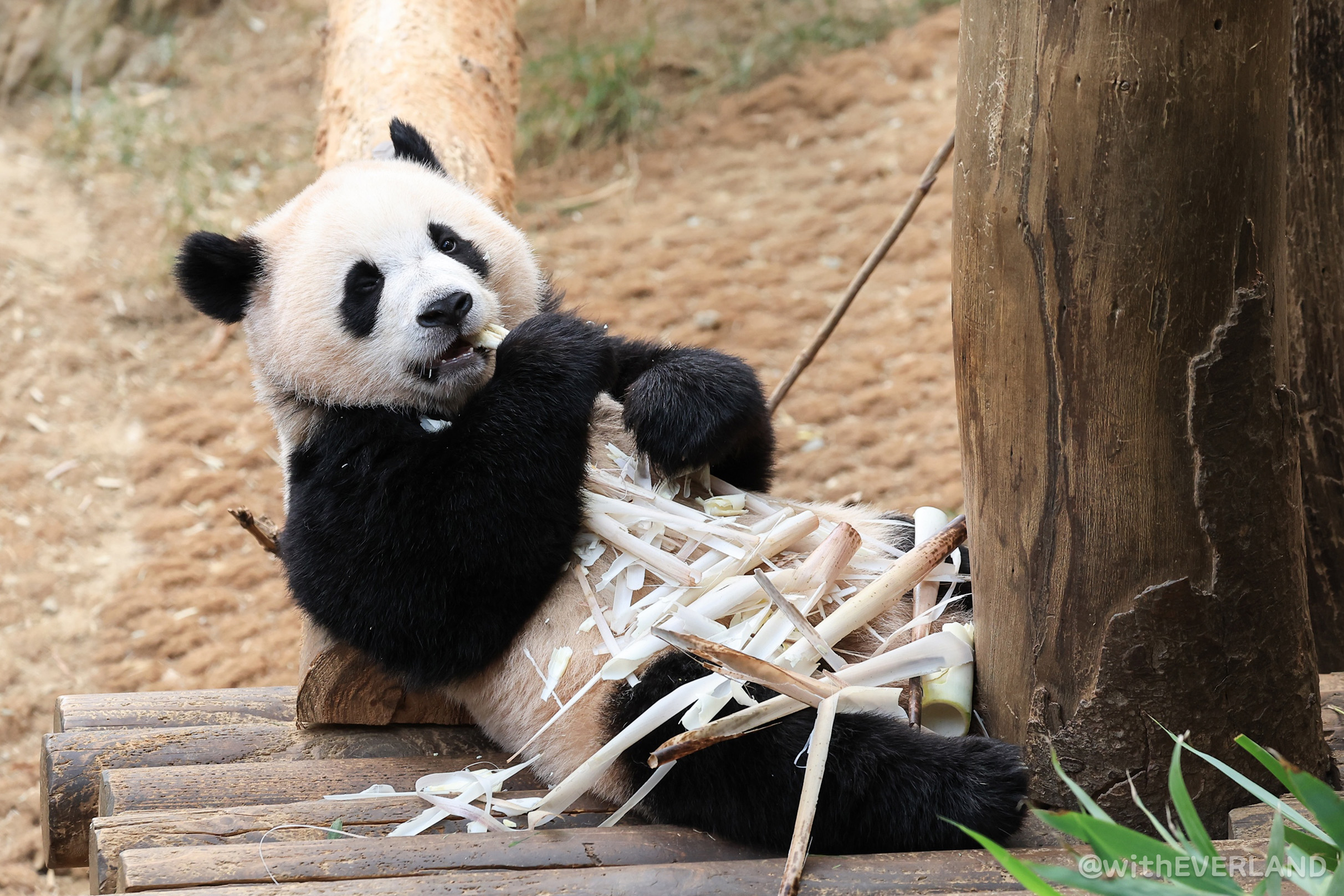루이와 후이의 고구마(분변)에는 이제 꽤 많은 양의 대나무와 죽순, 그리고 당근들이 섞여있습니다.