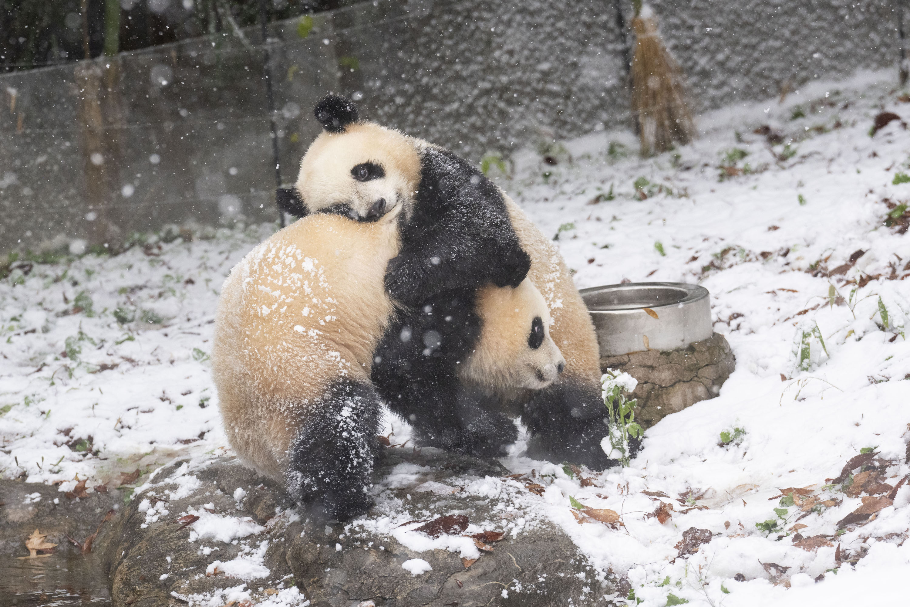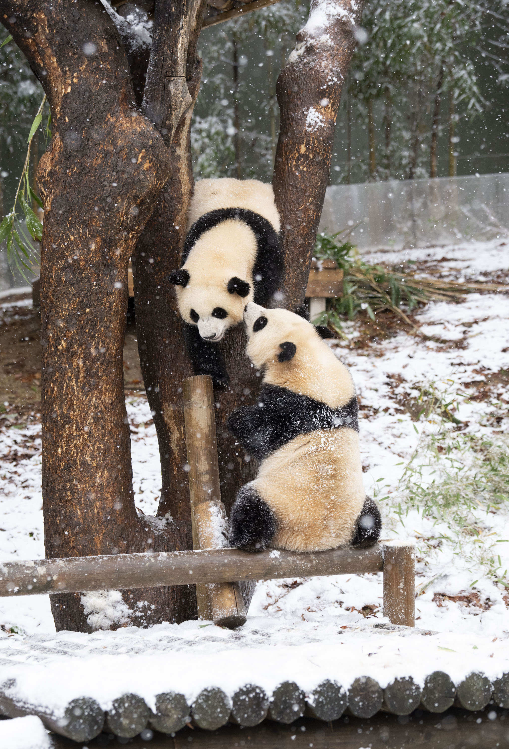 작년 7월 7일 태어난 쌍둥이 아기 판다들은 지난 겨울에는 너무 어려 실내 방사장에서 생활해 눈을 접할 수가 없었다.