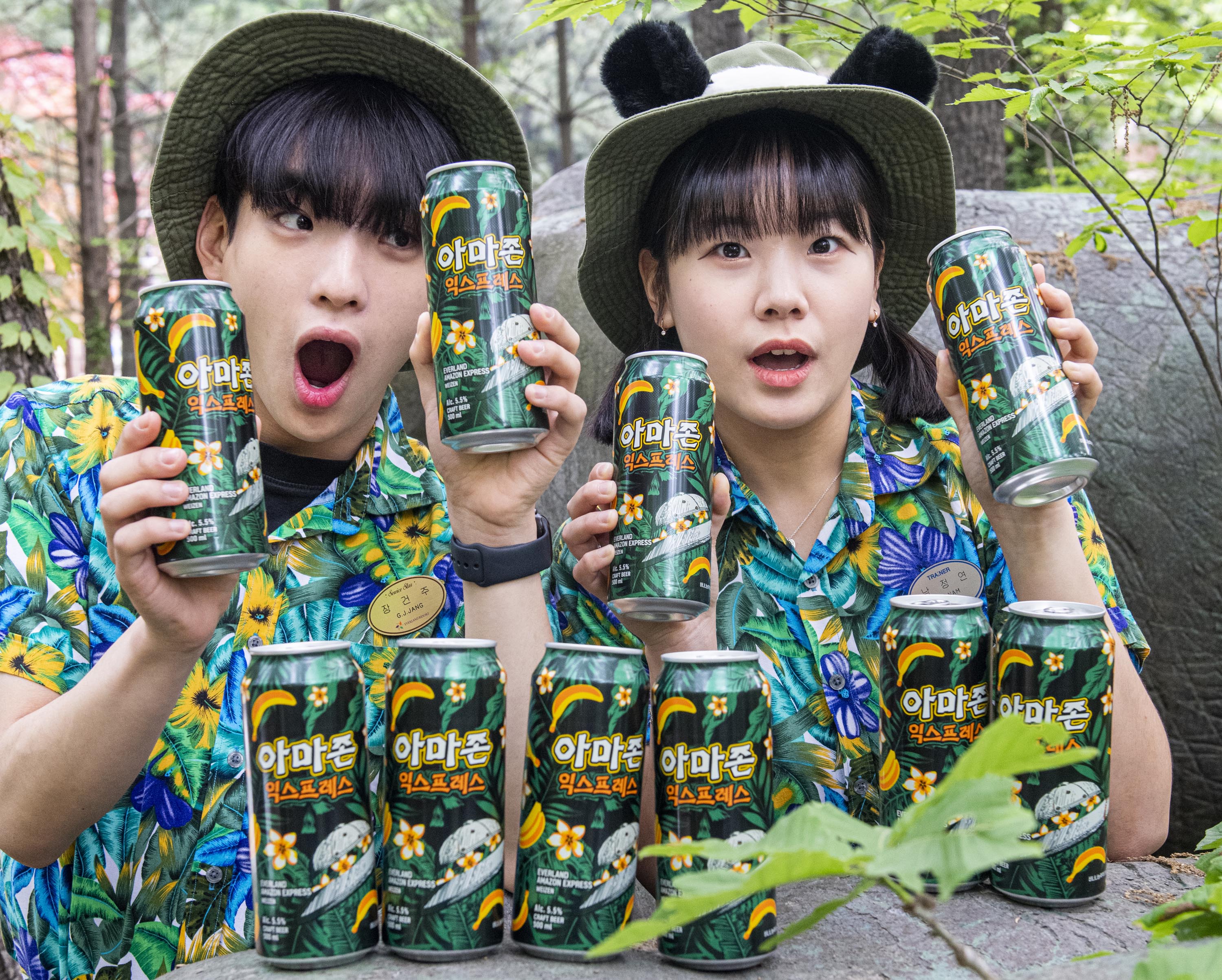 정글숲과 바나나, 탐험가 모자 등이 어우러진 아마존 컨셉의 맥주캔 디자인은 보는 것만으로 시원해지며 인스타그램에 올릴 사진 촬영 욕구를 불러 일으킨다.