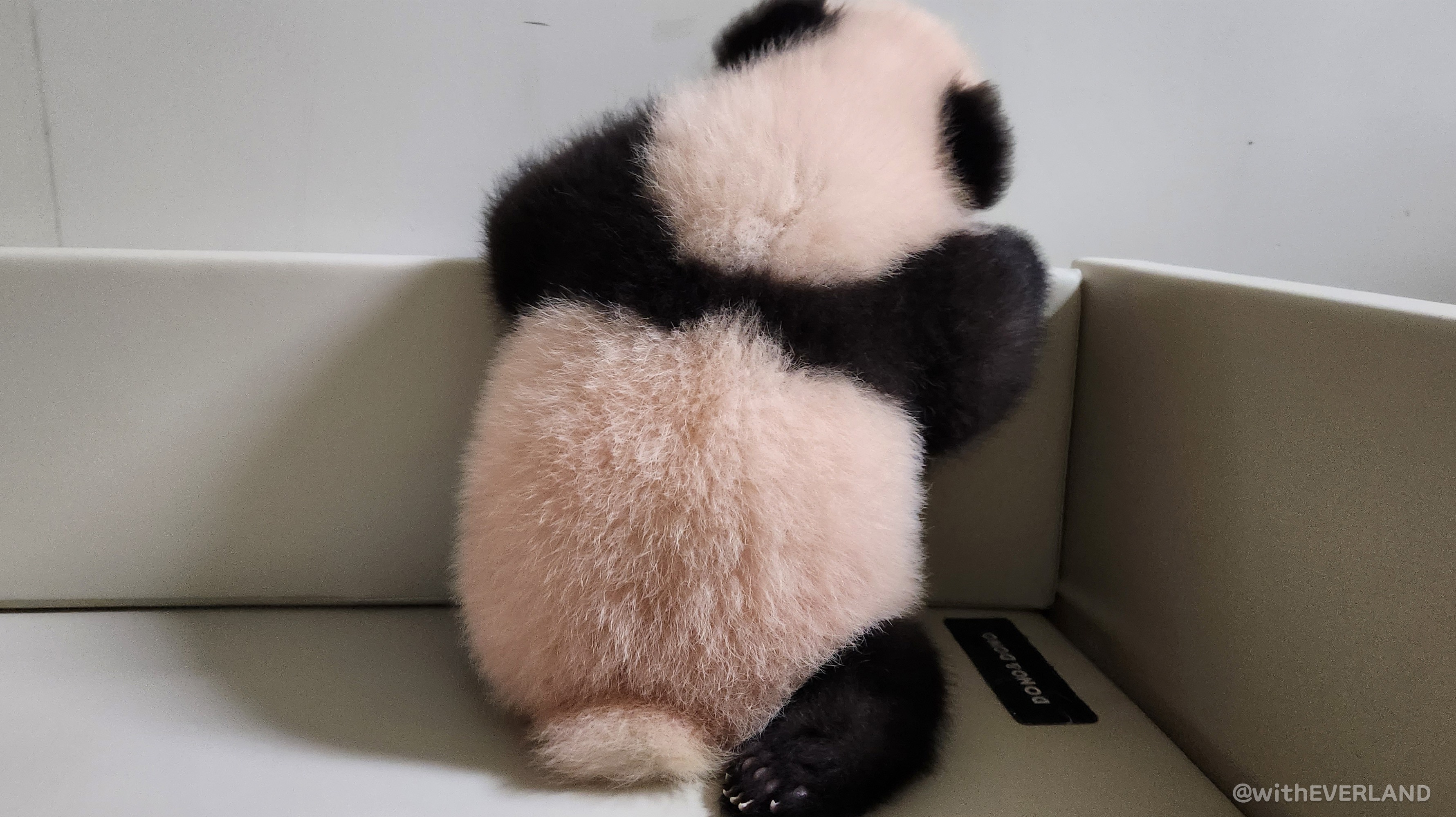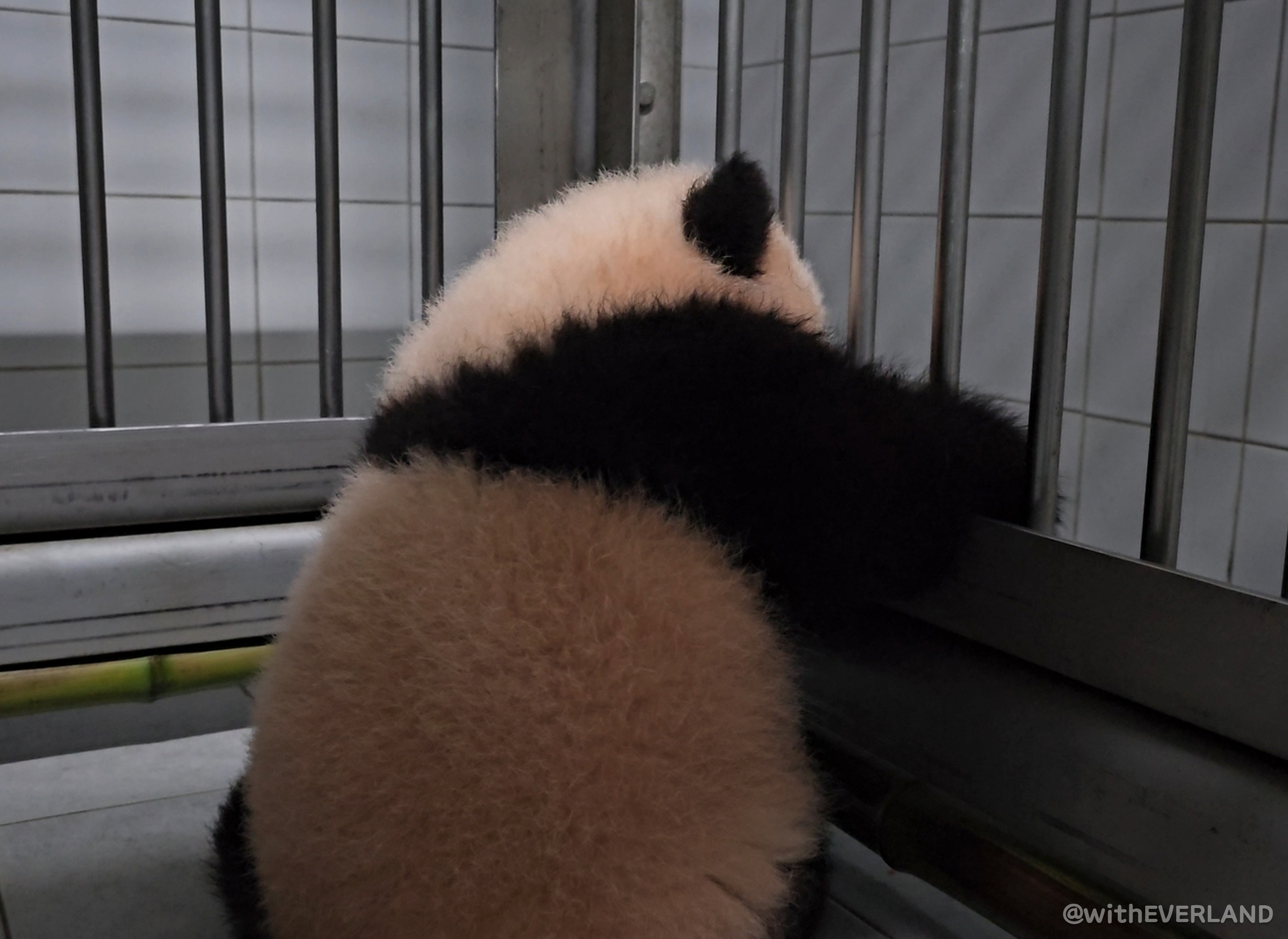 루이바오와 마찬가지로 넓은 세상이 궁금한지 매트 밖으로 이탈하고자 안간힘을 쓰는 모습이 정말 귀여웠어요.