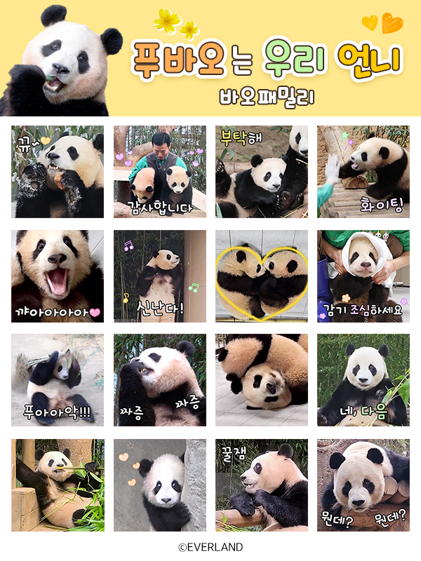 에버랜드 관계자는 "판다 가족의 다양한 모습을 소장하고 싶어하는 팬들의 의견을 반영해 푸바오 뿐 아니라 쌍둥이 동생 루이바오·후이바오 자매의 모습을 담은 이모티콘을 출시했다"고 전했다.