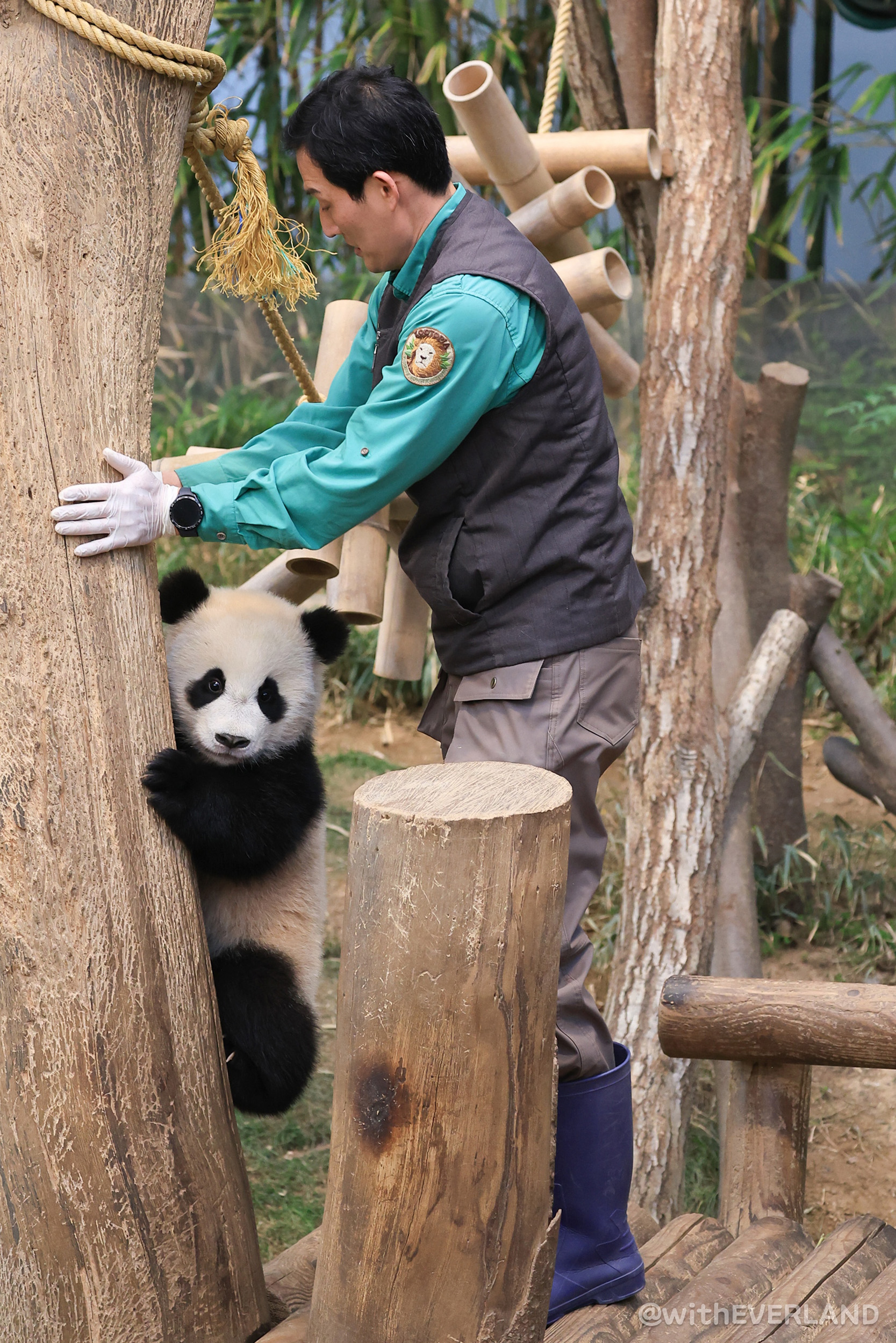 쌍둥이는 성장 단계에 맞게 실내방사장의 어부바 나무를 오르는 데 더욱 능숙해지고 있어요.