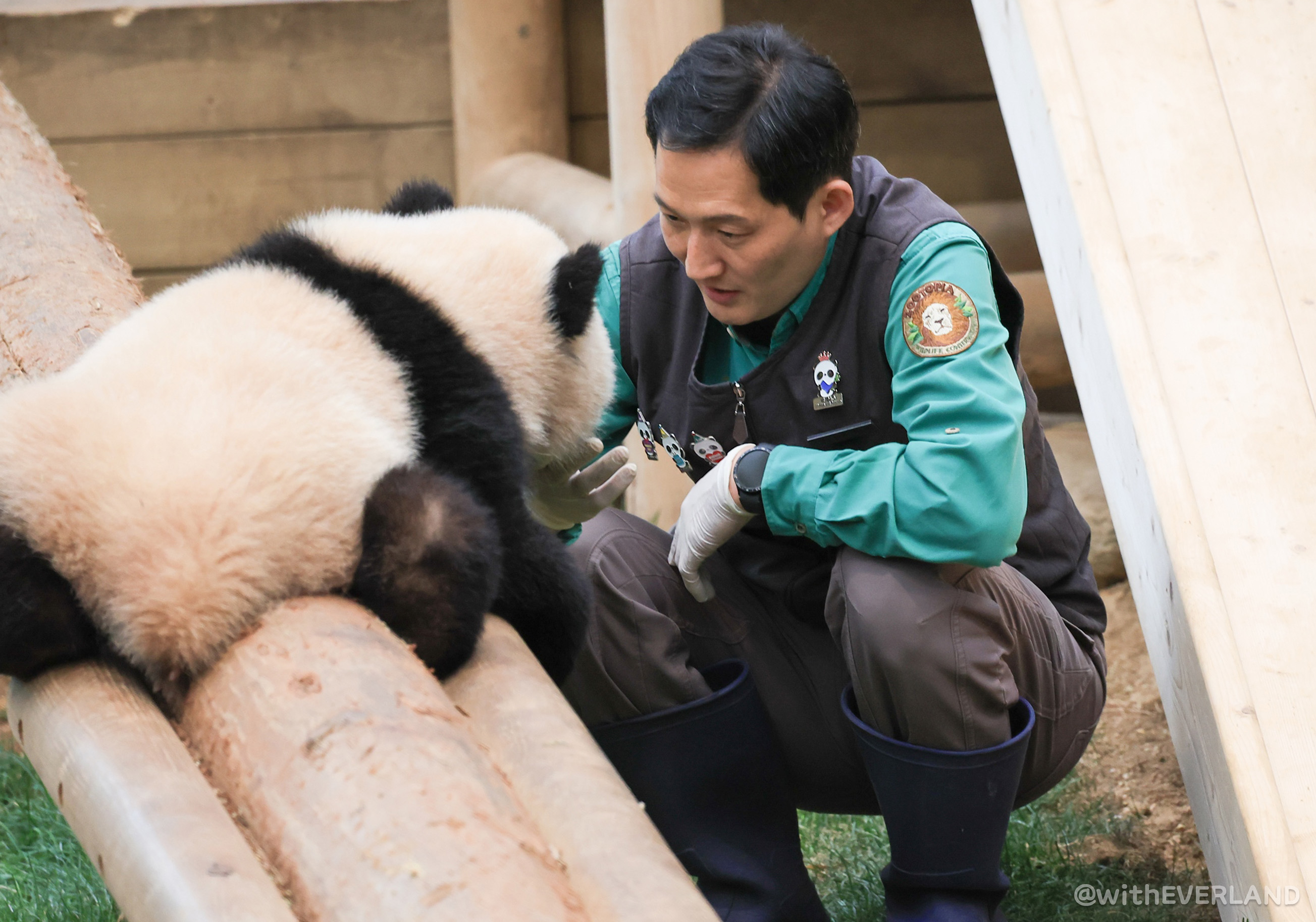 드디어 후이바오도 '어부바' 나무 오르기에 성공했어요.