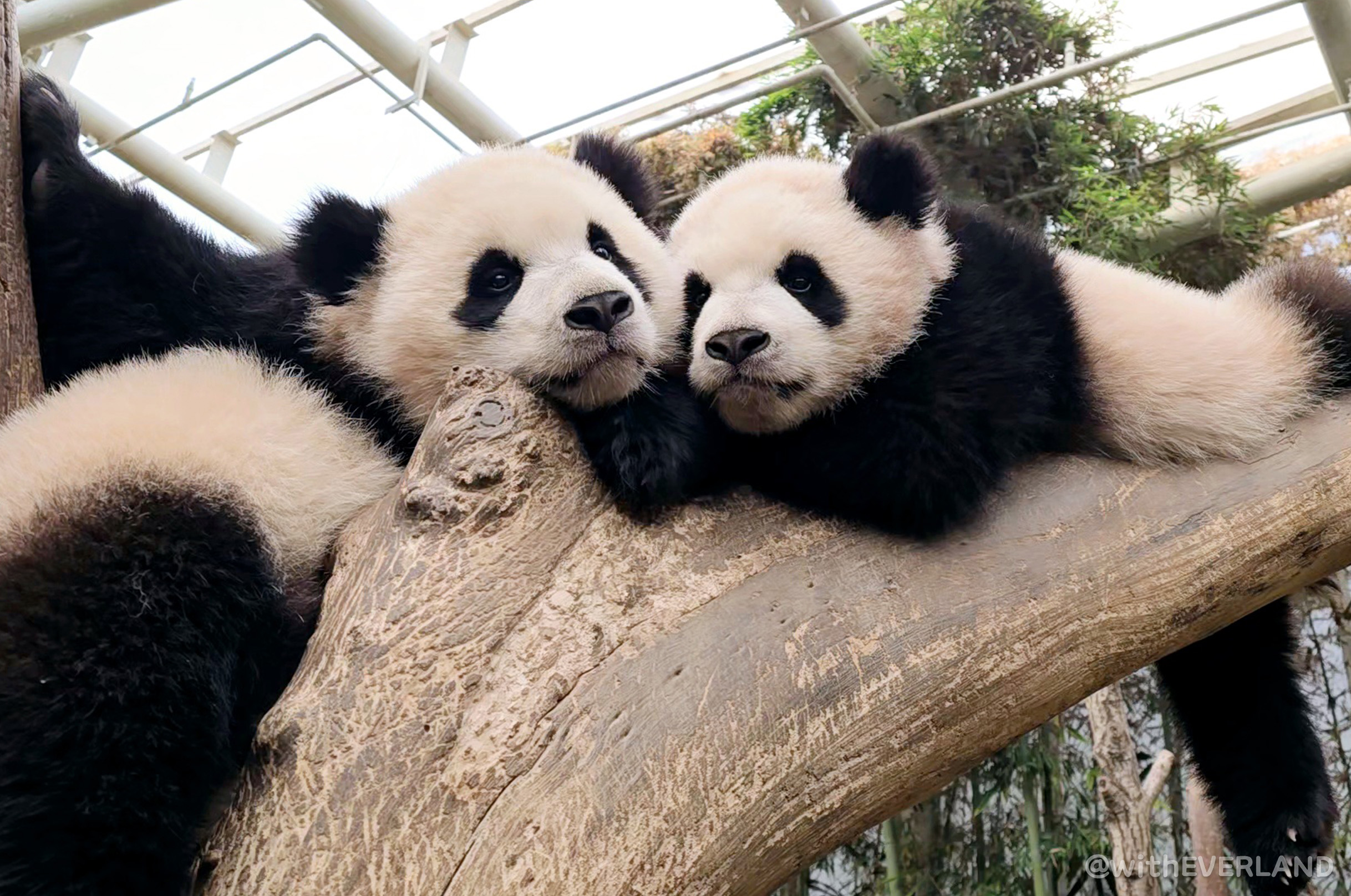 '어부바' 나무에 함께 올라 예쁘게 누워있는 루이, 후이를 가만히 쳐다보니