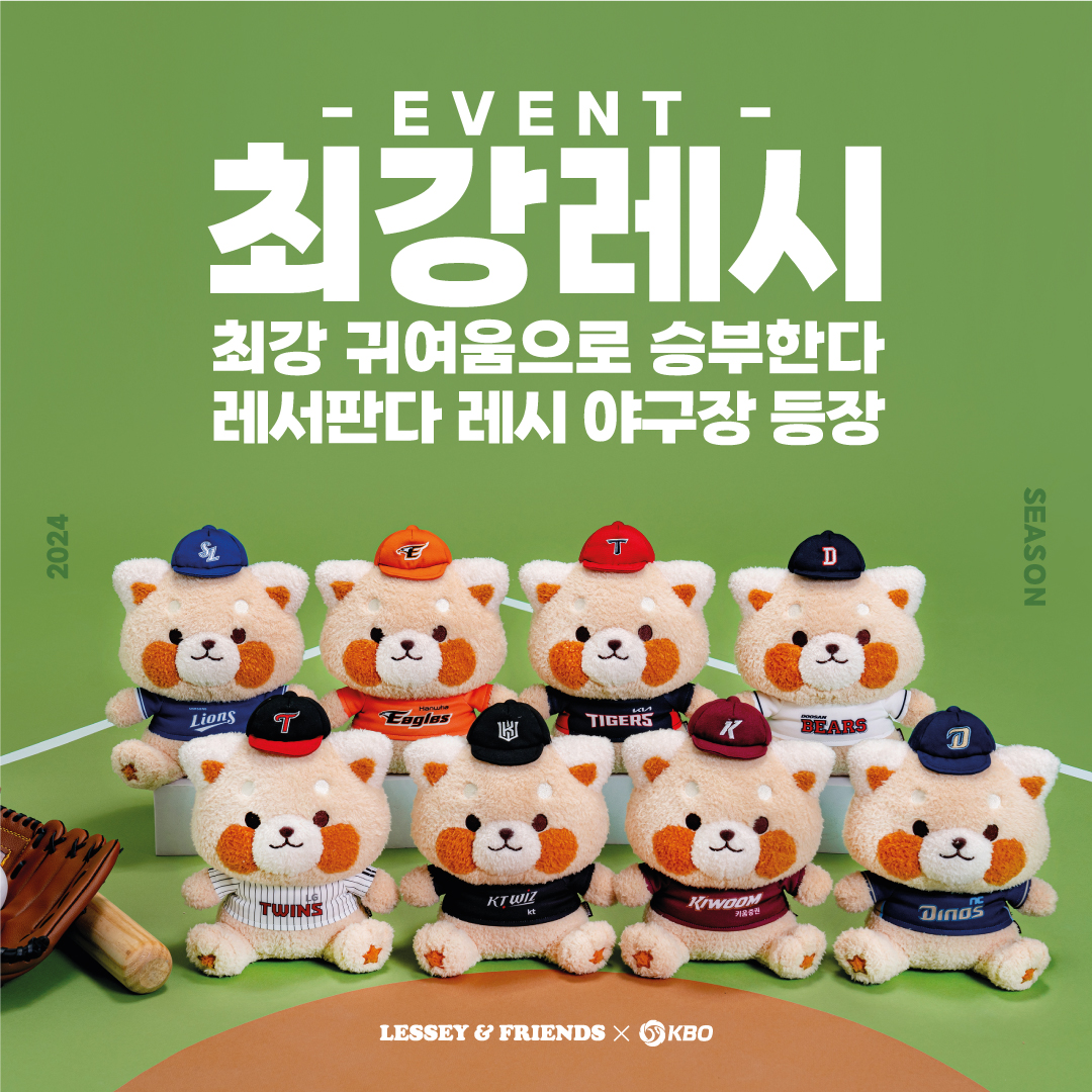 24일부터 '카카오톡 선물하기' 기획전을 통해 각 구단의 유니폼과 모자를 쓴 레시앤프렌즈 캐릭터의 봉제인형, 인형키링, 메탈배지를 만나 볼 수 있다.