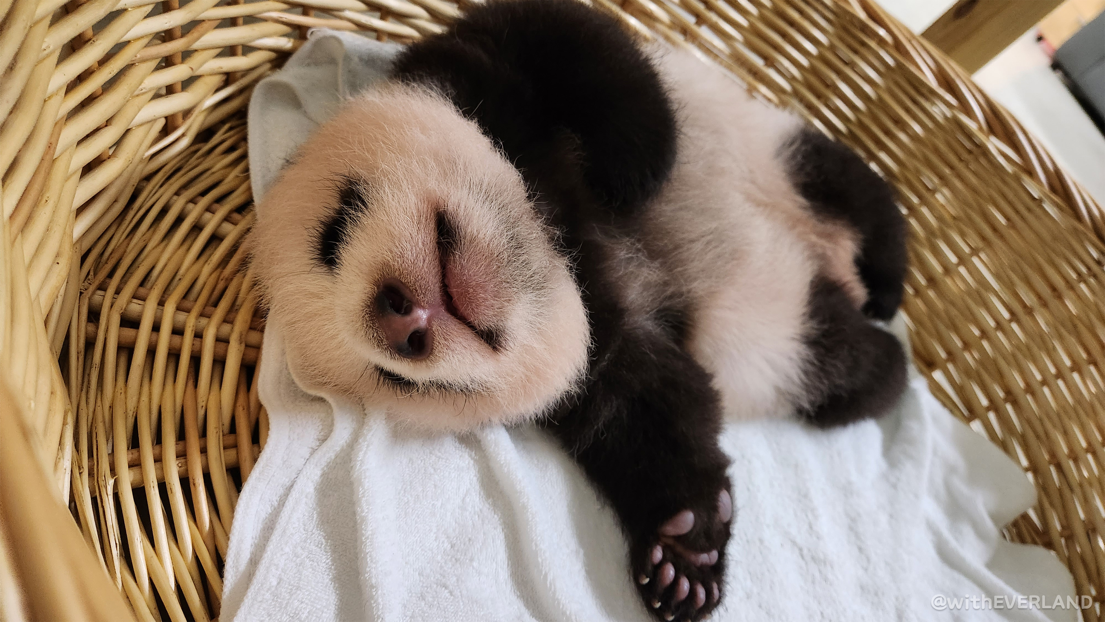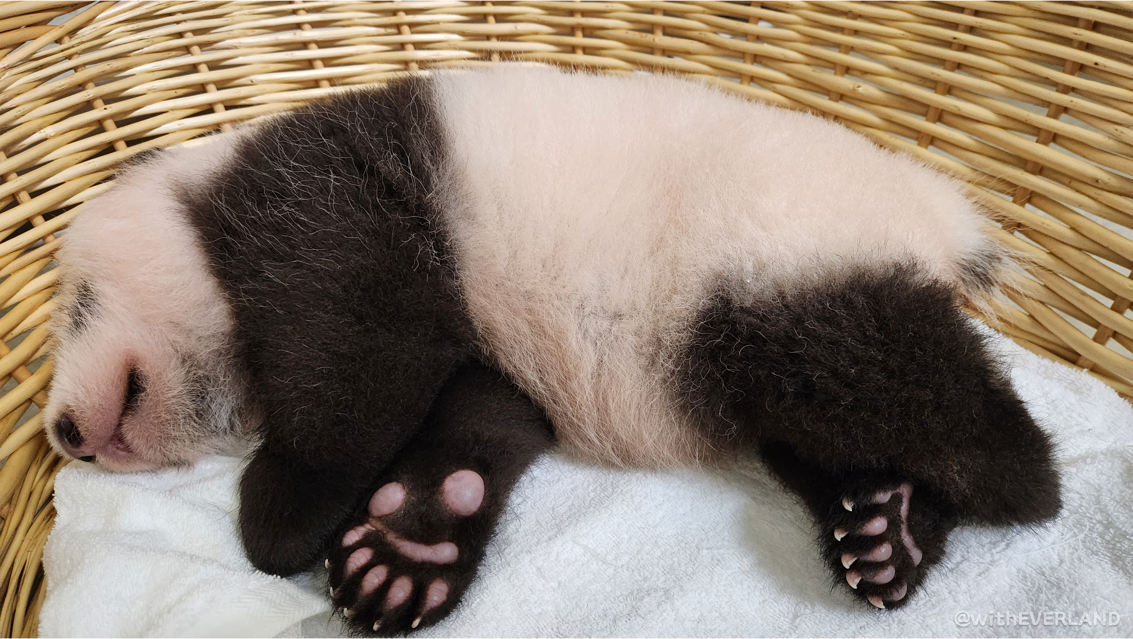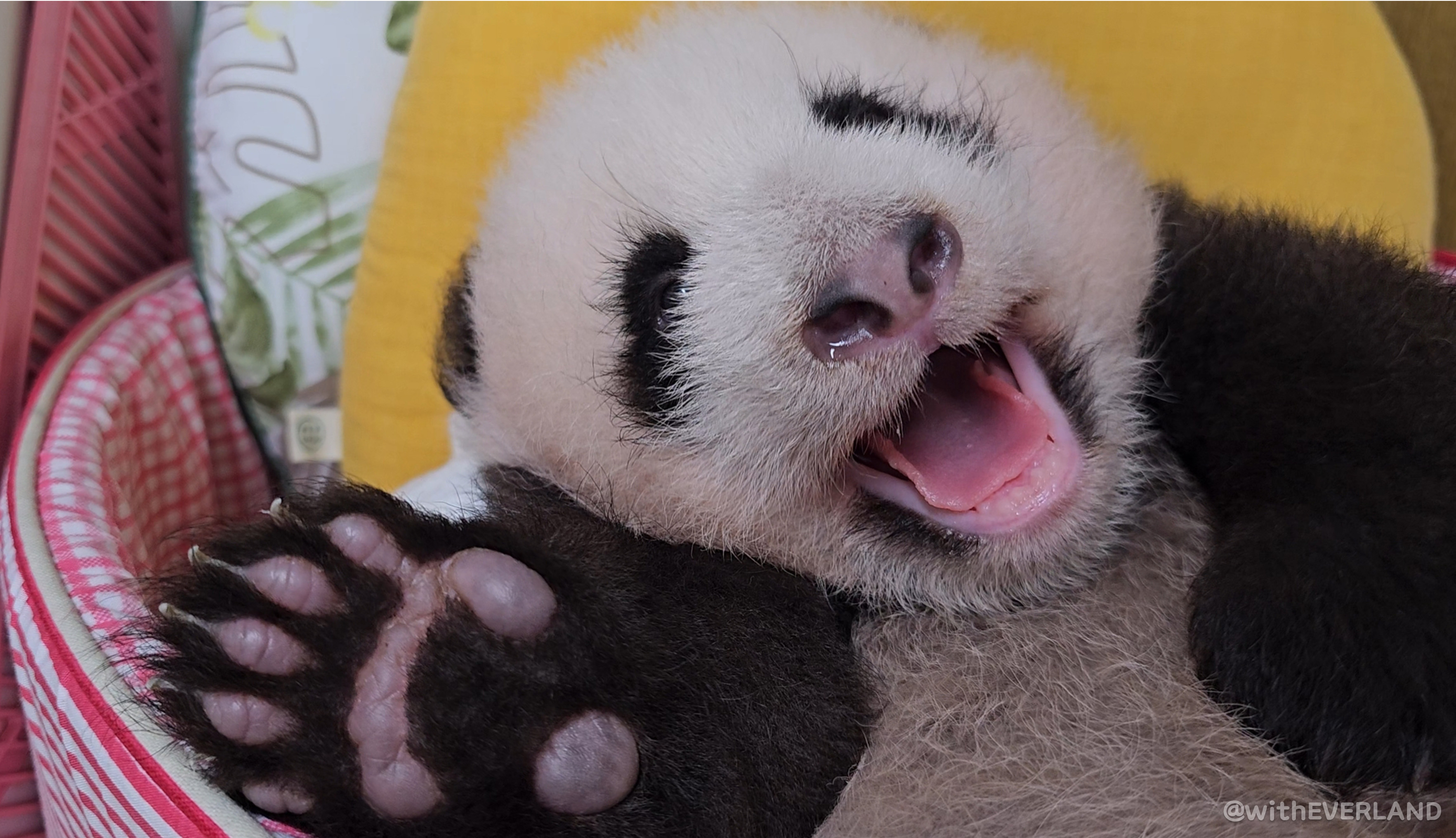 따라서 누렇기도, 핑크색이기도 한 아기판다들의 털 색은 엄마의 타액과 아기의 소변에 의한 것으로 전문가들이 판단하고 있습니다.