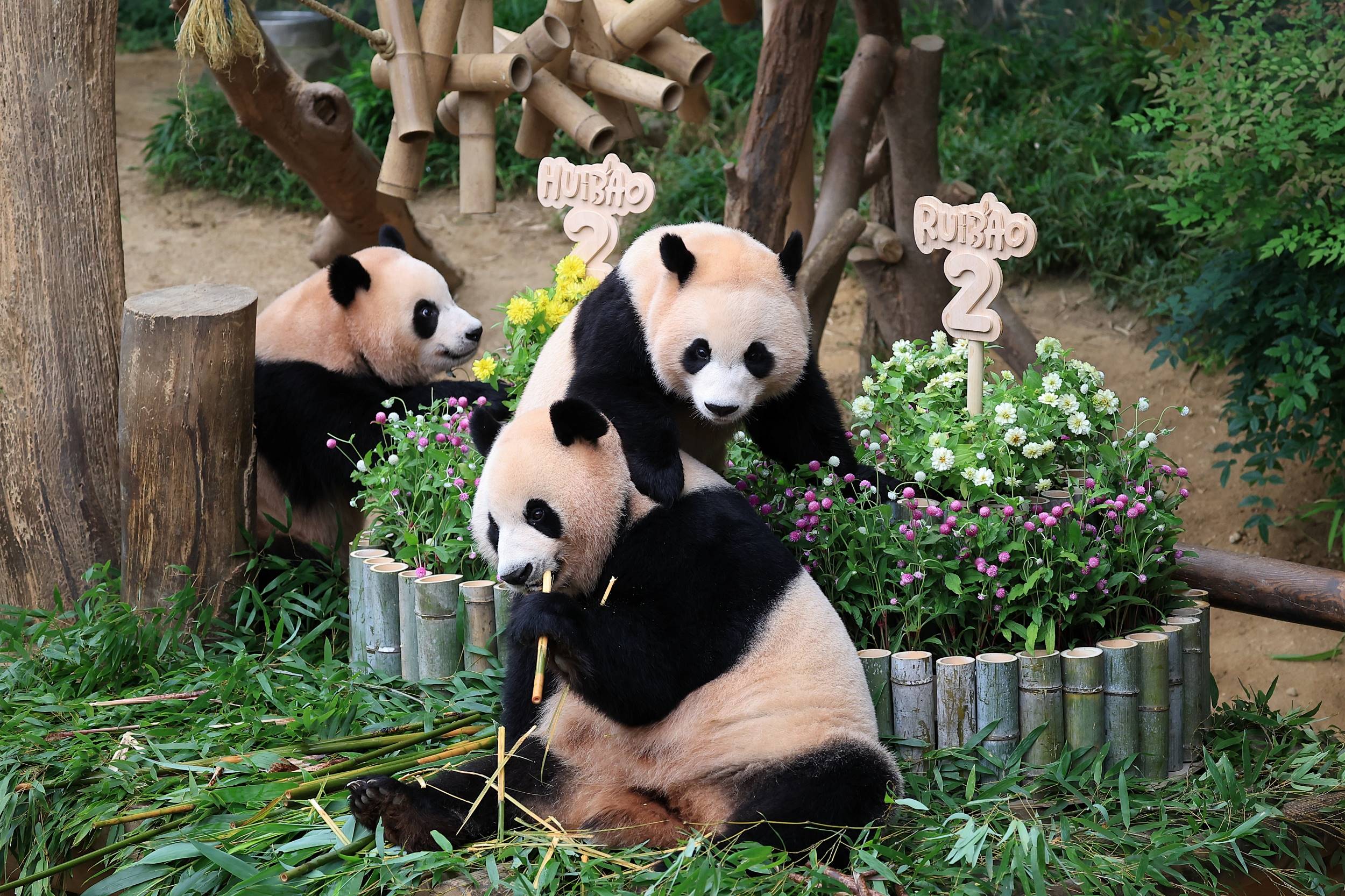 국내 최초 쌍둥이로 태어난 자이언트판다 자매 루이바오와 후이바오가 7일, 두돌 생일을 맞았다. 지난해 4월 중국 쓰촨성 워룽 선수핑 기지로 이동한 큰언니 푸바오의 동생 판다들이다.