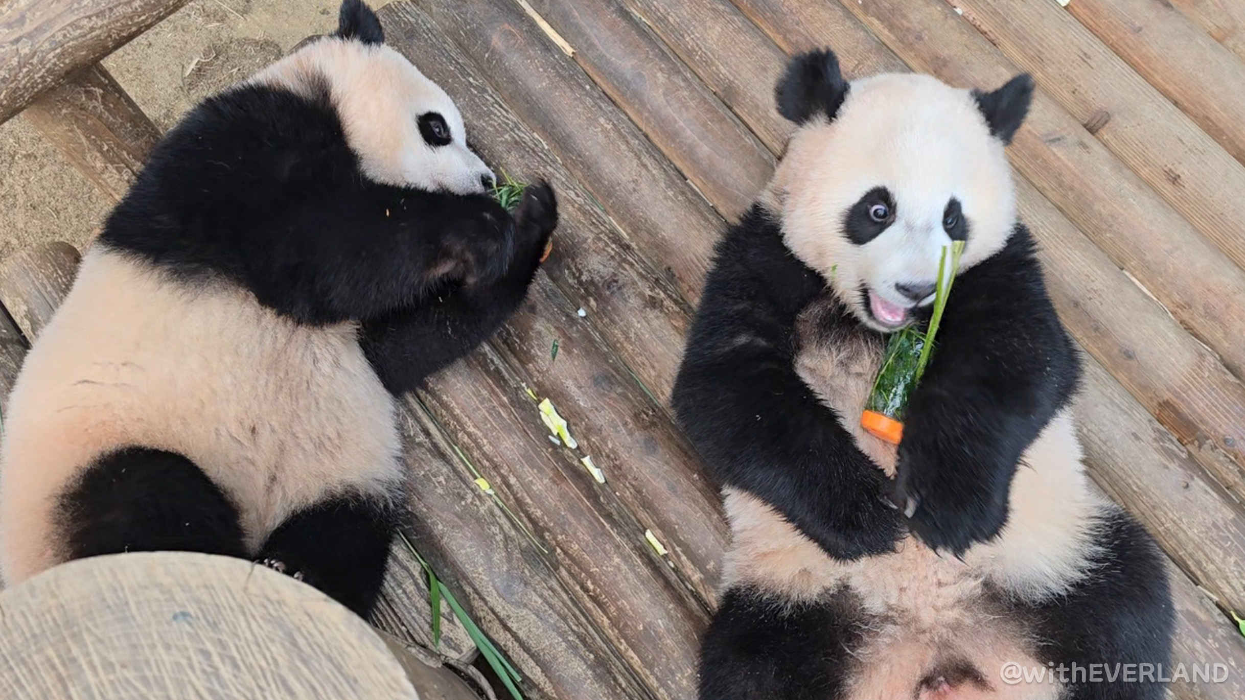 쌍둥이의 영구치가 튼튼하게 자리 잡으면서 대나무, 죽순, 당근 먹는 실력이 더욱더 나아지고 있어요.