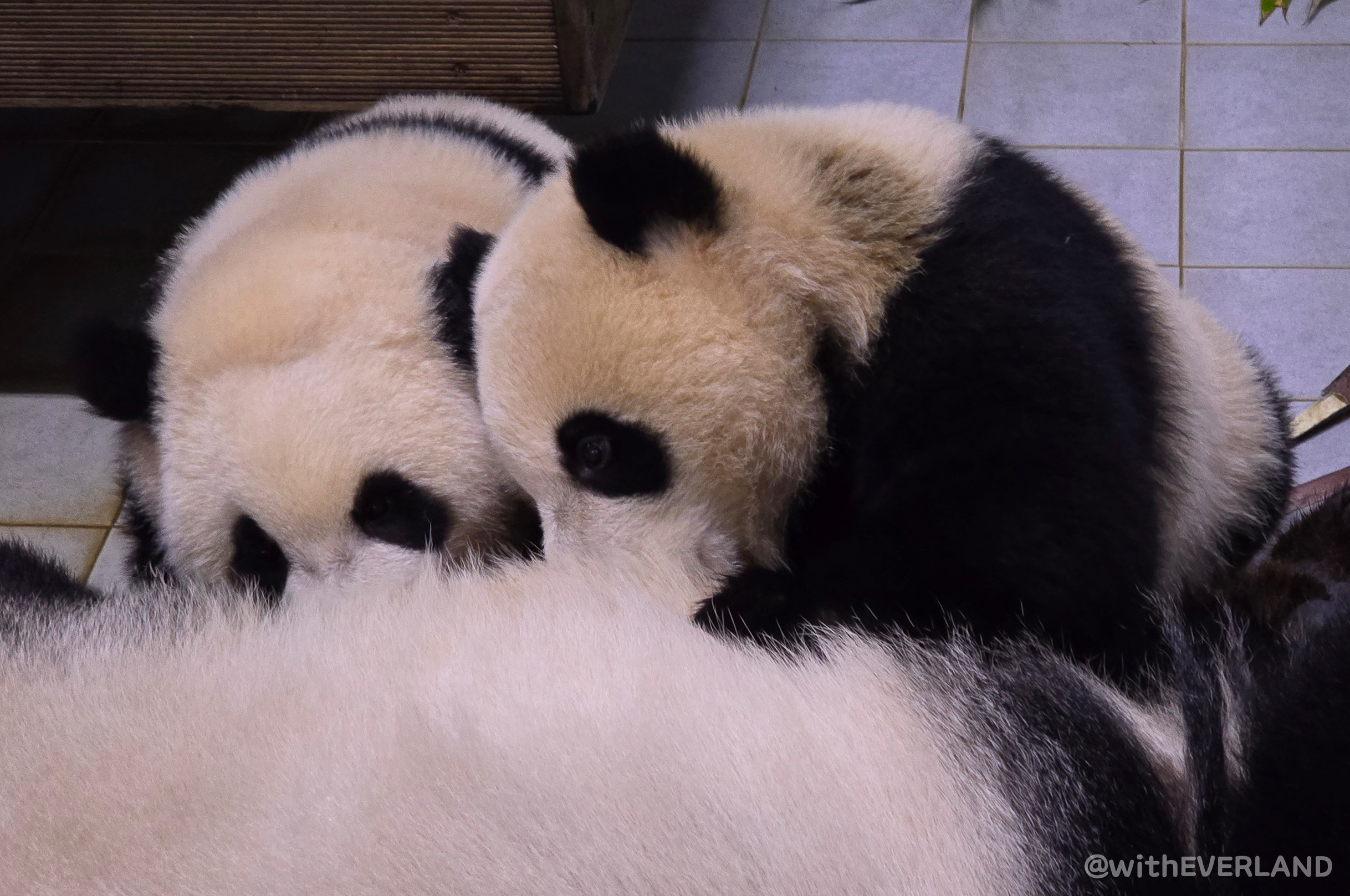 푸근한 이미지의 판다 이모와 귀여운 쌍둥이의 조화가 여러분들에게도 신선한 장면이 될 것 같아요.