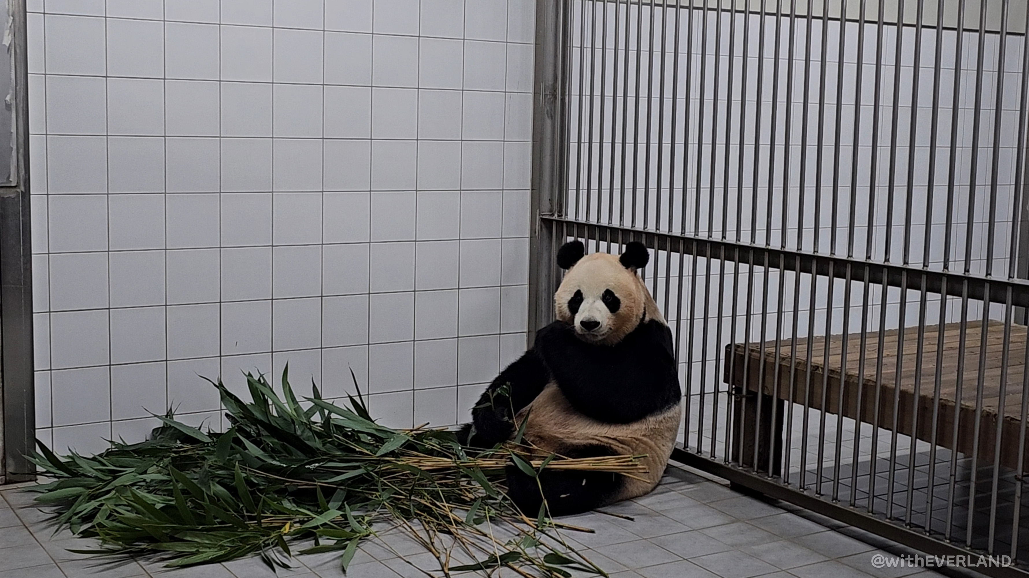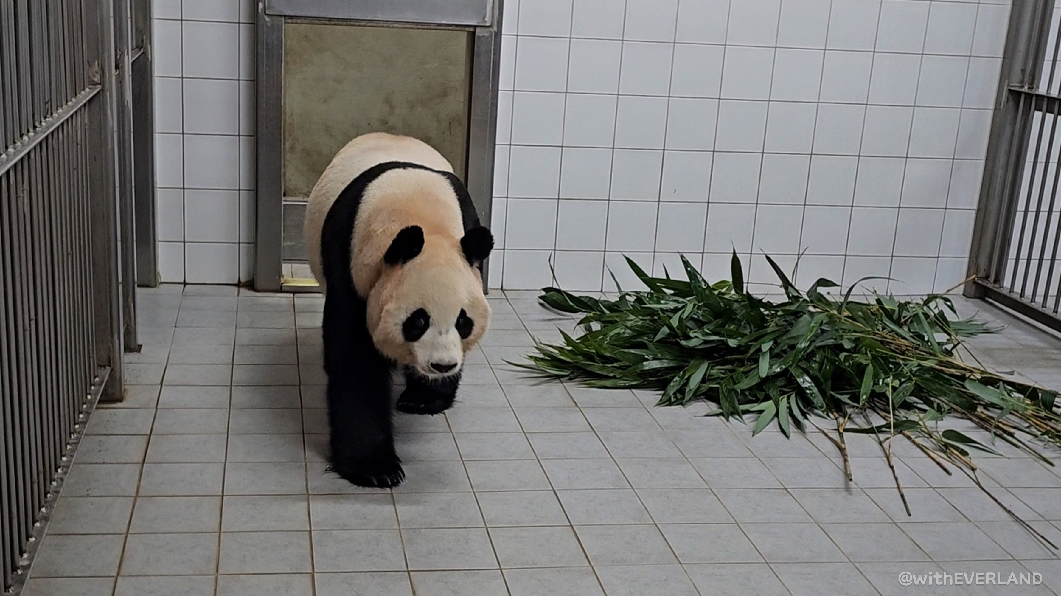 아이바오는 오랜만에 분만실에서 나와 체중도 측정하고 대나무 섭취도 했답니다.