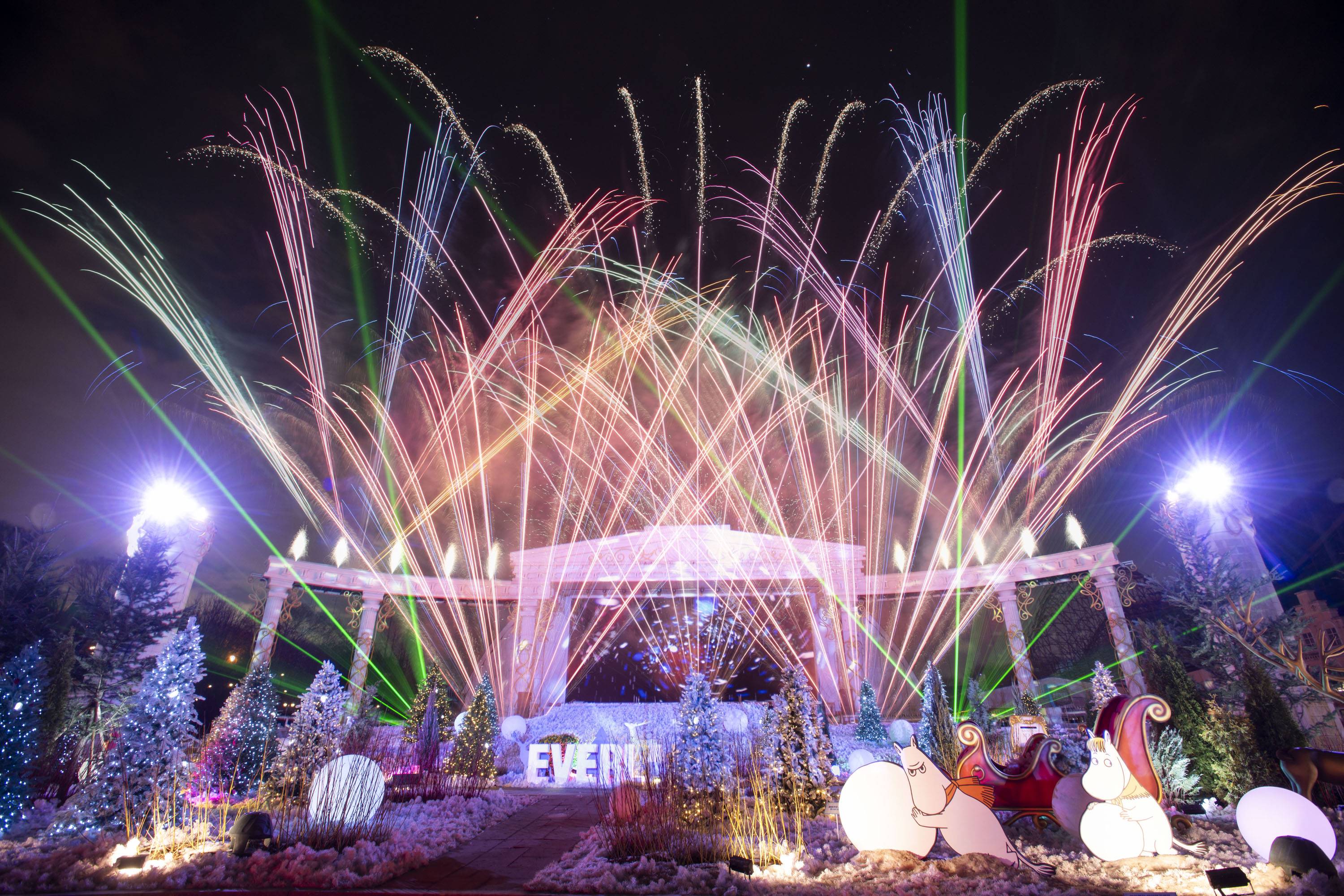 먼저 무민 애니메이션과 함께 화려한 불꽃들이 밤하늘을 아름답게 수놓는 멀티미디어쇼 '무민 불꽃놀이'가 지난 10일부터 3월 1일까지 매주 금토 및 공휴일에 포시즌스가든에서 펼쳐지고 있다.