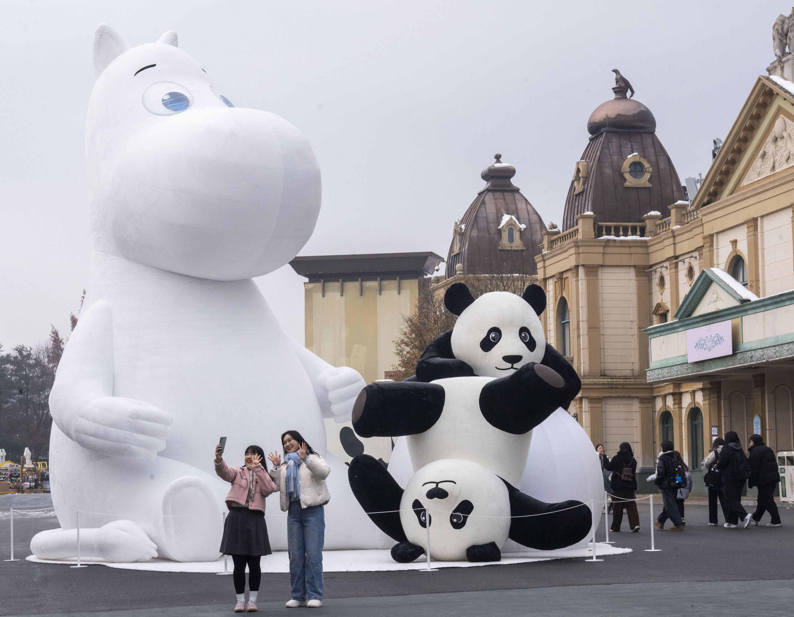 무민 바로 옆에는 에버랜드 최고 스타인 쌍둥이 판다 루이바오, 후이바오 아트 조형물도 약 4미터 높이로 함께 조성돼 있어 올 겨울을 기억할 시그니처 포토스팟으로 손색이 없다.