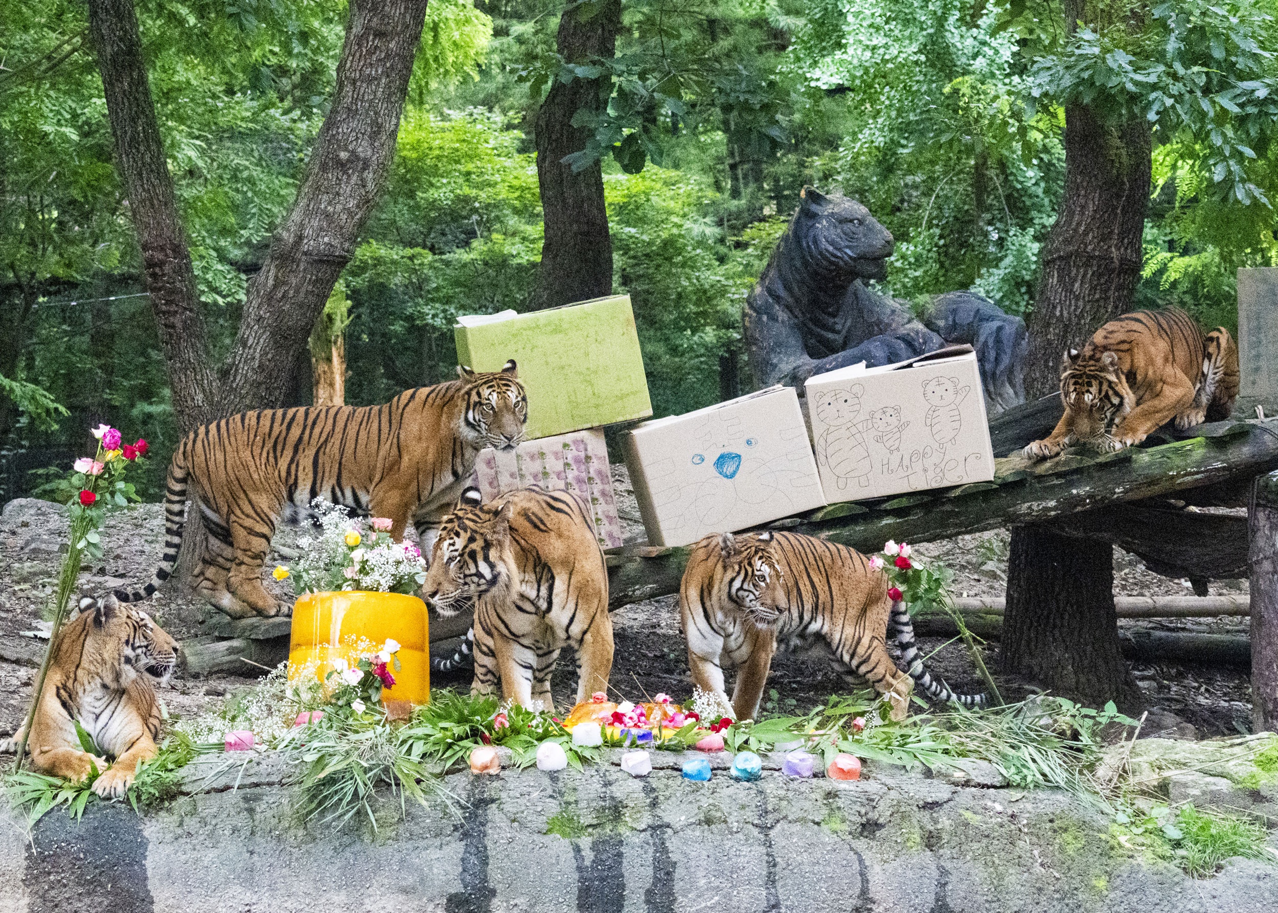 사파리월드 호랑이들은 방사장 쉘터 위에서 얼음 장난감과 케이크를 맛보며 이 날 하루 특별한 여름을 보냈다. 오후엔 타이거밸리 호랑이들도 시원한 얼음 인리치먼트와 함께 '세계 호랑이의 날'을 기념했다.
