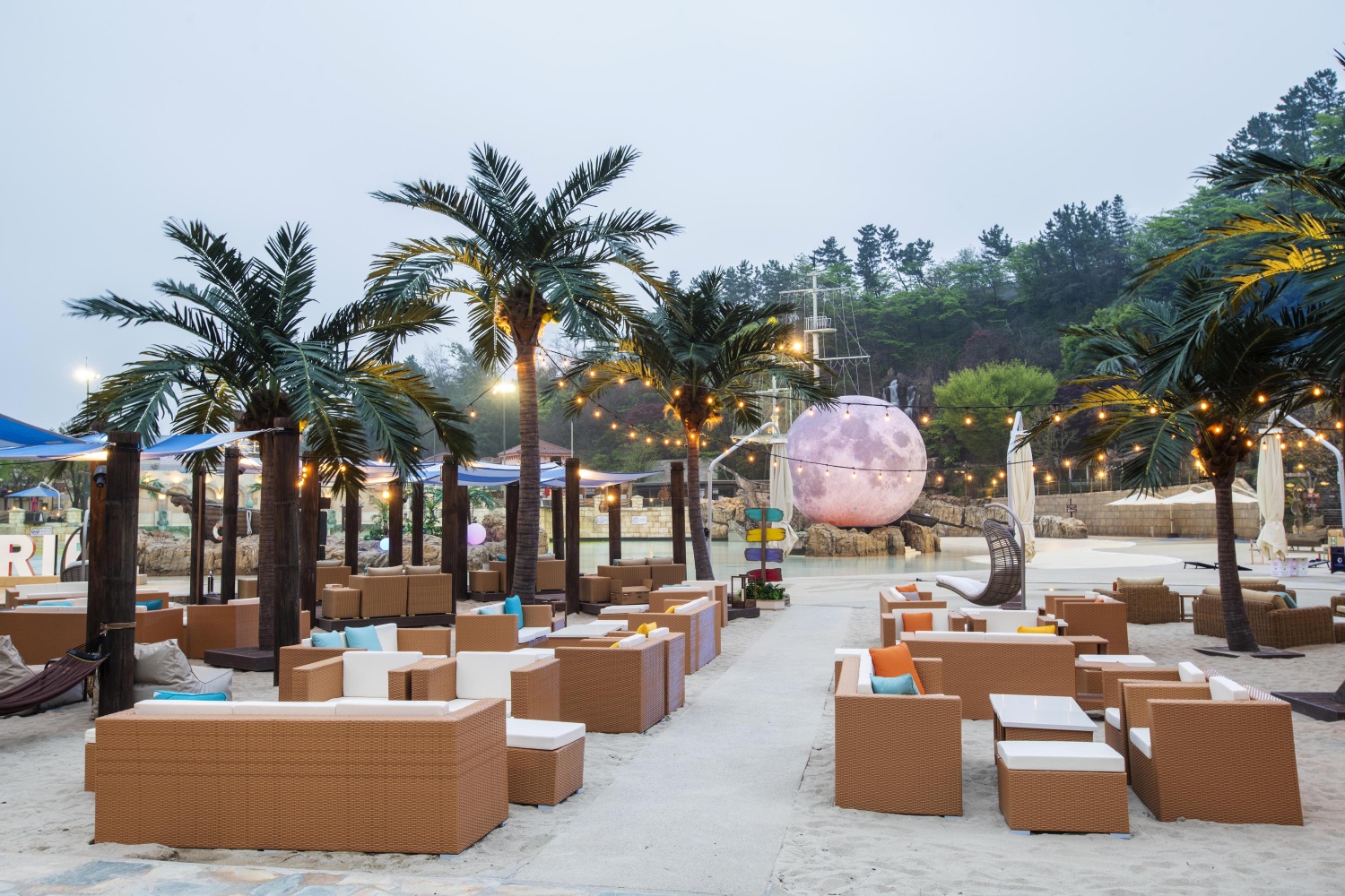 야자수 아래 쉐이드존에는 해먹, 빈백, 행잉체어 등 약 260석 규모의 좌석이 마련돼 있어 여유롭게 휴식을 취할 수 있고, 비치사이드바와 레스토랑 등에서는 이국적인 풍광 속에서 다양한 종류의 먹거리를 맛볼 수 있다.