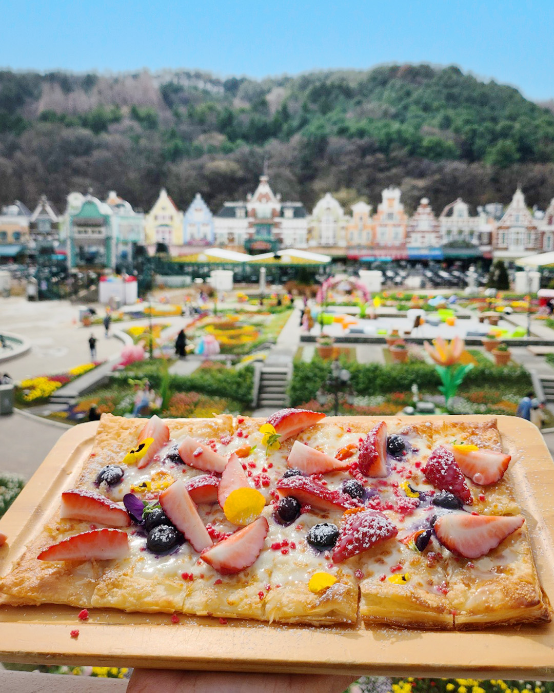최근 에버랜드 인스타그램에 페어리 타운을 배경으로 한 딸기꽃 피자 사진이 올라왔는데, "와 딸기꽃 피자! 맛이 어떨지 엄청 궁금하네요", "새콤한 딸기와 담백한 피자의 환상적 궁합", "에버랜드 가서 먹방 찍을 사람 구함" 등 다양한 댓글이 달리며 호기심을 자극하고 있다.