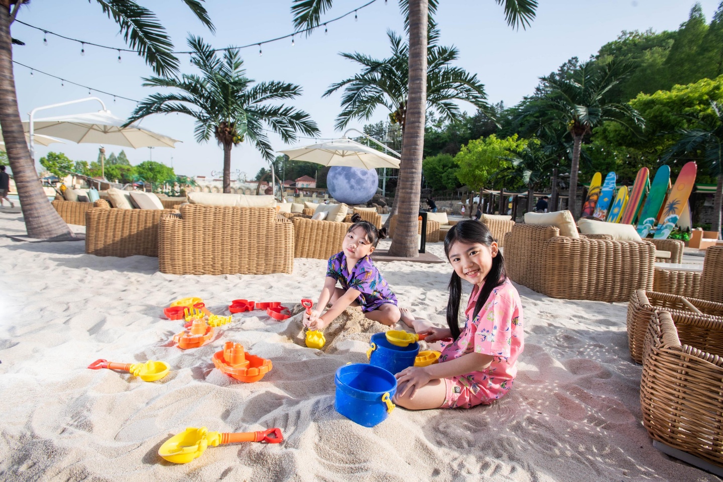 파도풀 옆 해변가에는 3미터 높이의 해적선 모래 조각, 셀카 거울존 등 포토스팟과 함께 백사장 모래놀이 체험도 마련돼 있어 어린이 동반 가족들이 참여하기에 좋다.