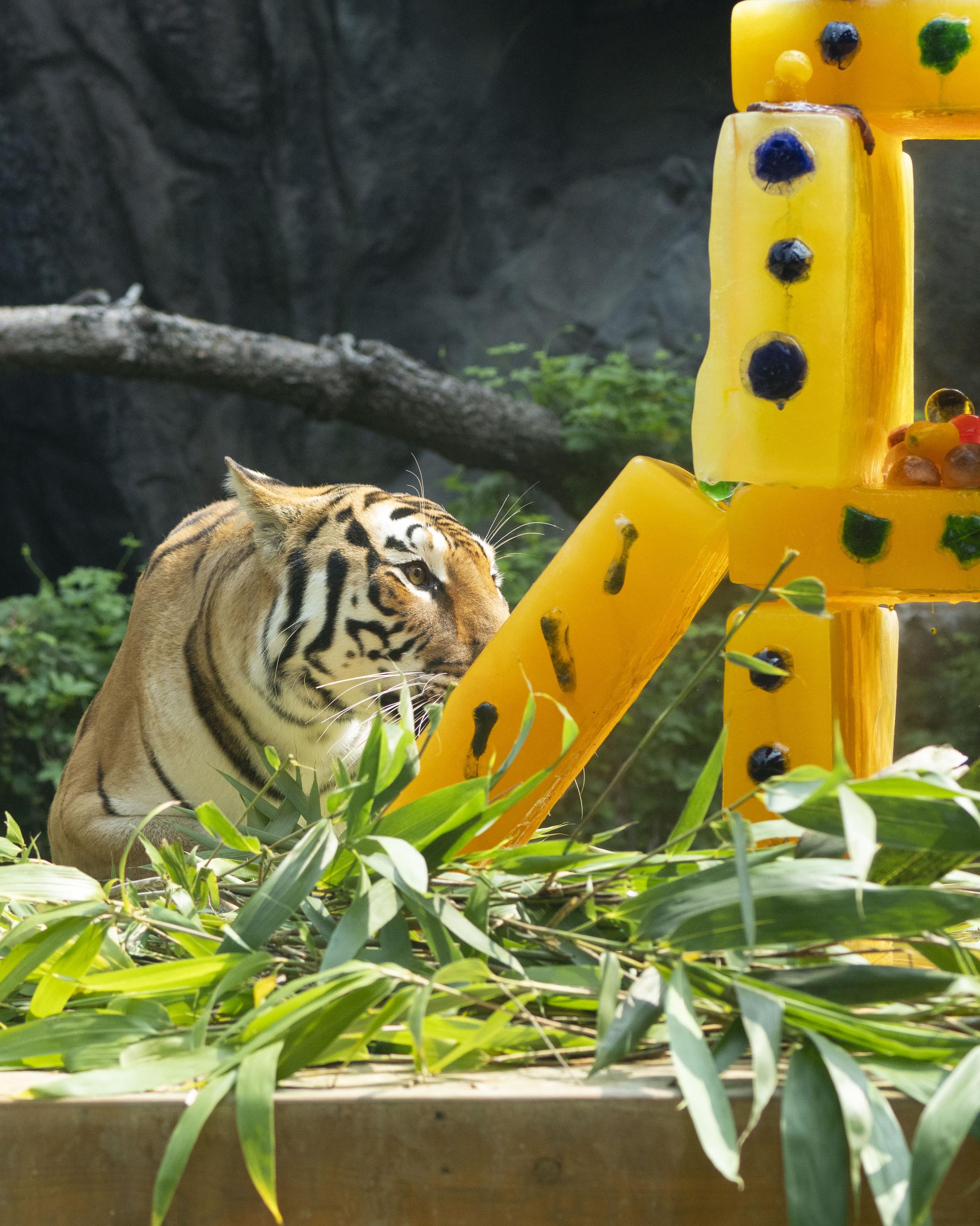 중복을 하루 앞둔 오늘(29일), '세계 호랑이의 날'을 맞아 에버랜드 타이거밸리에 살고 있는 호랑이들이 비타민 얼음 케이크를 먹고 있다.
