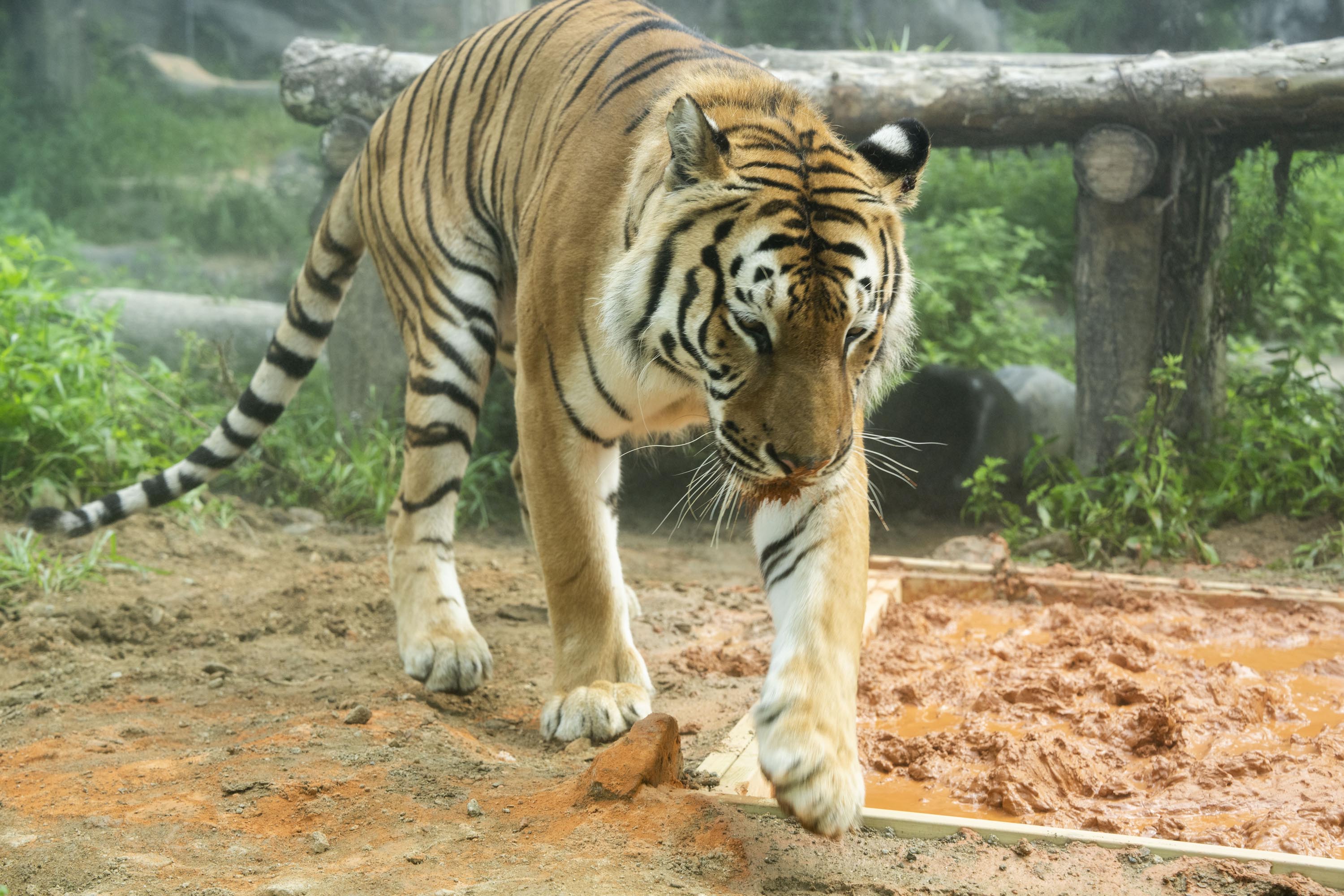 세계 호랑이의 날인 이날 삼성물산 리조트부문(사장 정해린) 에버랜드는 호랑이들의 시원한 여름나기를 위해 비타민, 과일, 고기 등으로 만든 얼음 케이크를 제공하고 체온 조절, 심리적 안정 등에 도움이 되는 황토진흙목욕 인리치먼트(행동풍부화) 활동을 진행했다고 밝혔다.