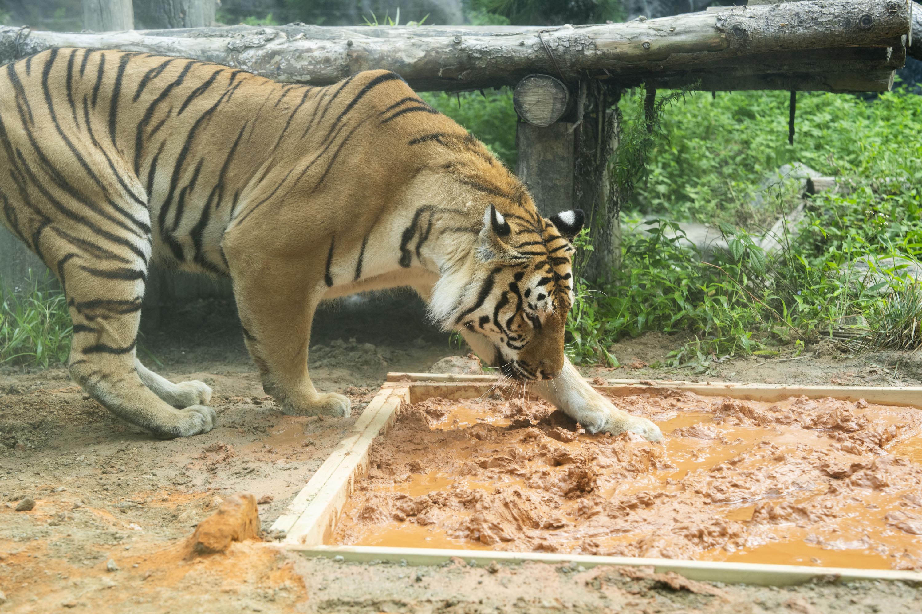 세계 호랑이의 날인 이날 삼성물산 리조트부문(사장 정해린) 에버랜드는 호랑이들의 시원한 여름나기를 위해 비타민, 과일, 고기 등으로 만든 얼음 케이크를 제공하고 체온 조절, 심리적 안정 등에 도움이 되는 황토진흙목욕 인리치먼트(행동풍부화) 활동을 진행했다고 밝혔다.