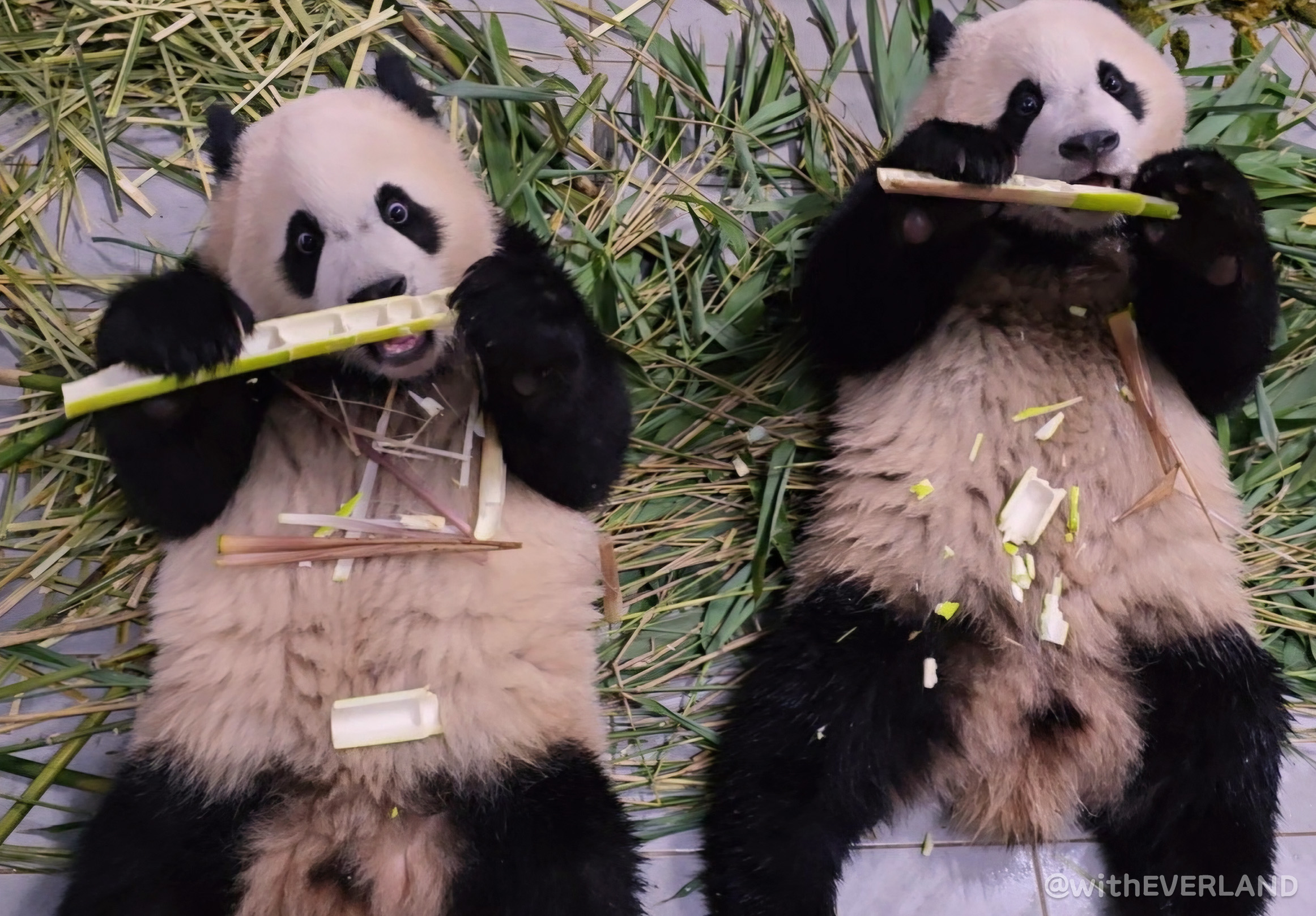 루이와 후이가 마치 "이것 좀 보세요! 어때요, 우리 다리 짧지 않죠~?" 하며 포즈를 취해주는 듯한 장면이 유독 눈에 많이 띄었답니다.