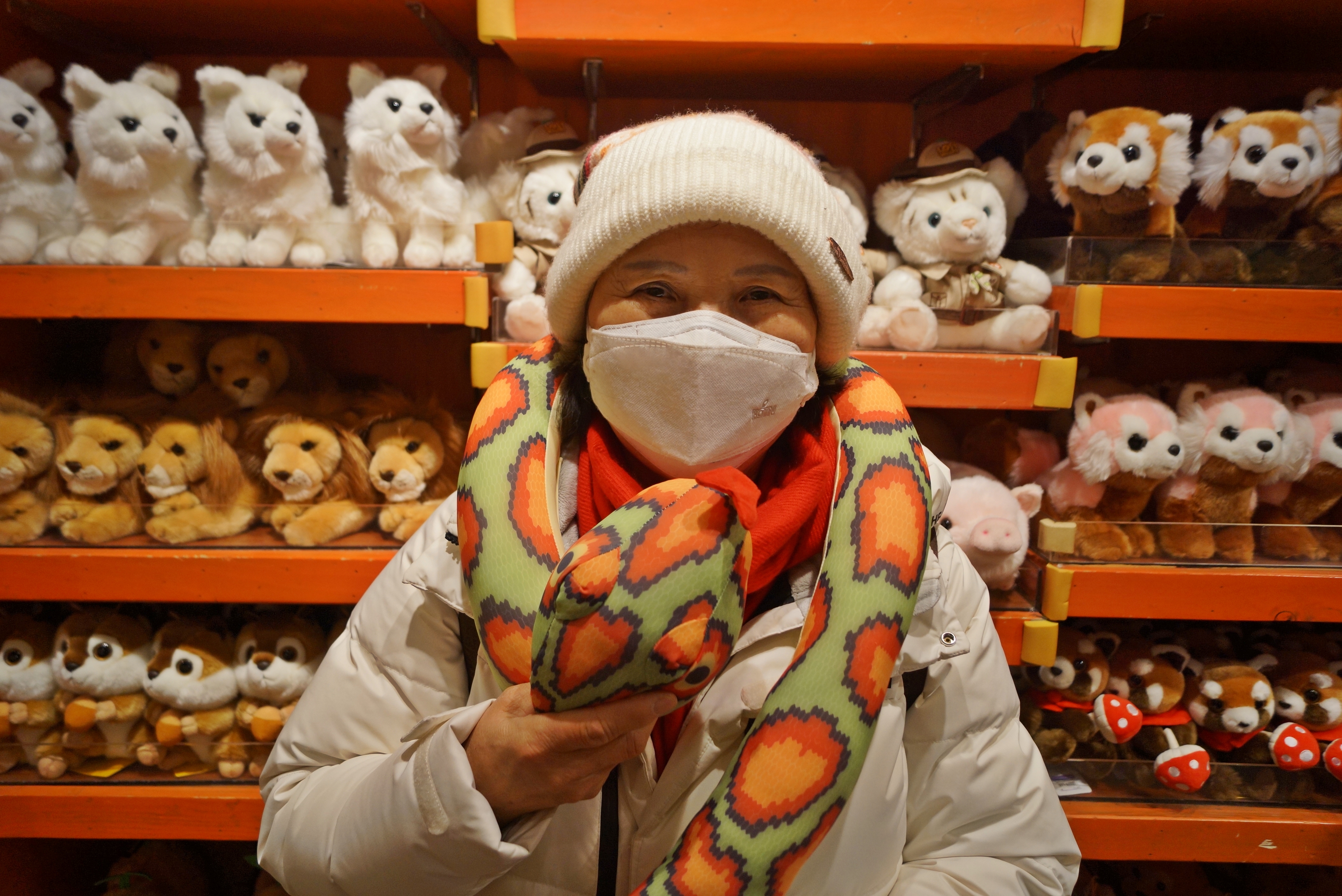 뱀 목도리를 둘러보며 ‘무섭지?’ 하는데요,
