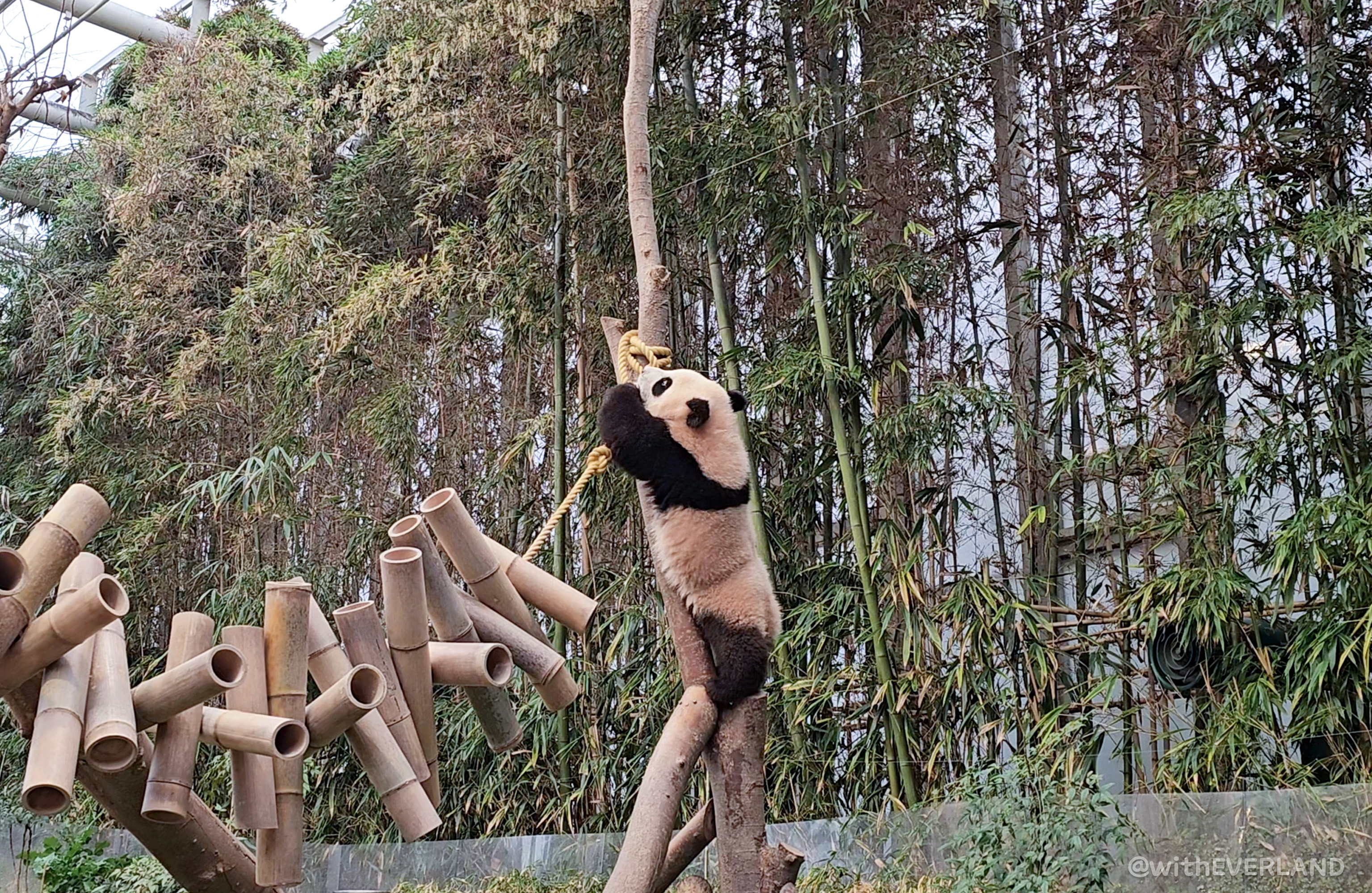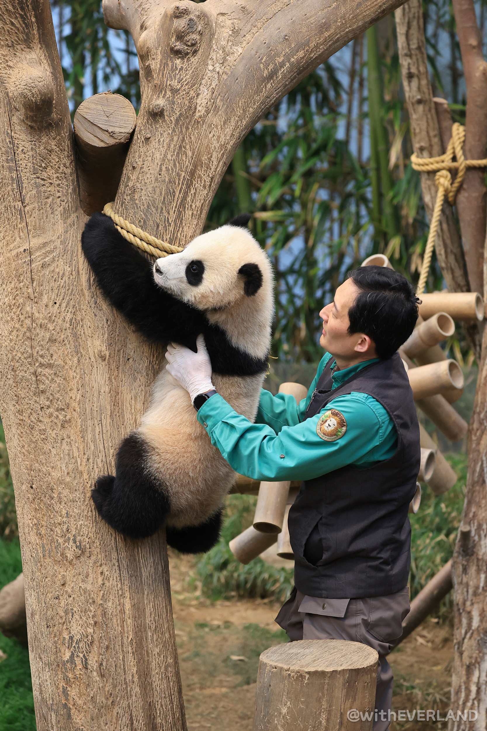 드디어 후이바오도 '어부바' 나무 오르기에 성공했어요.