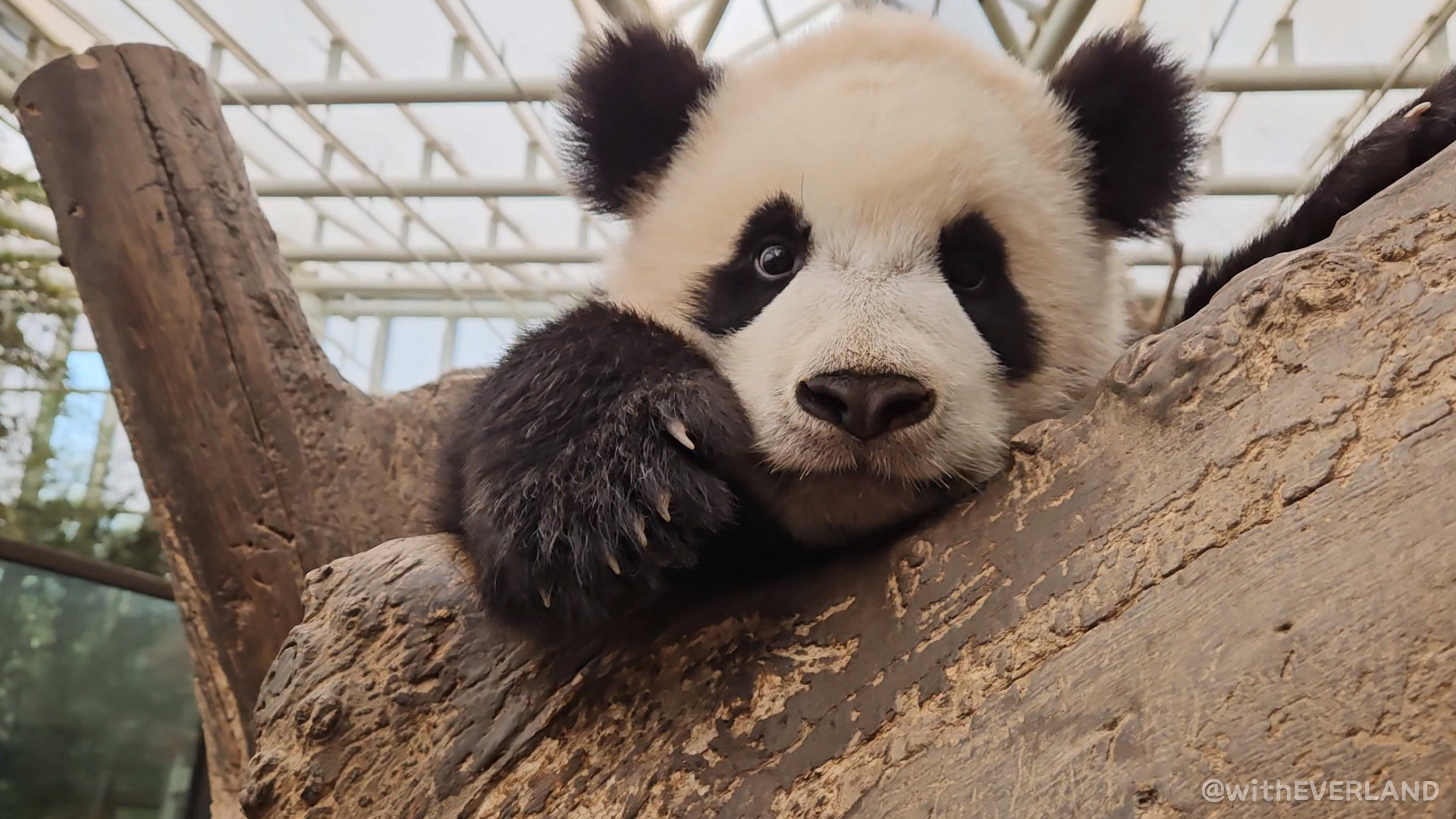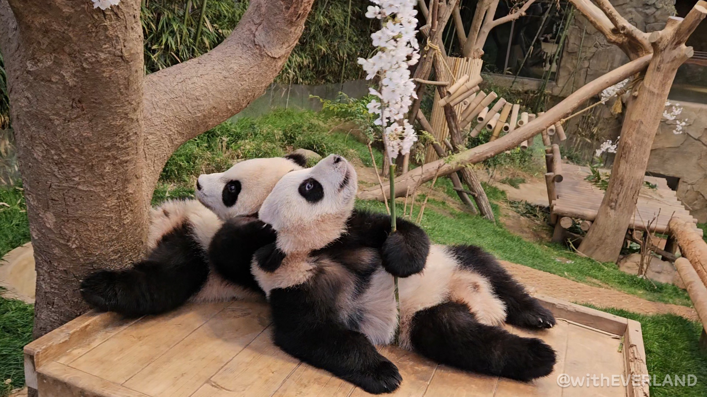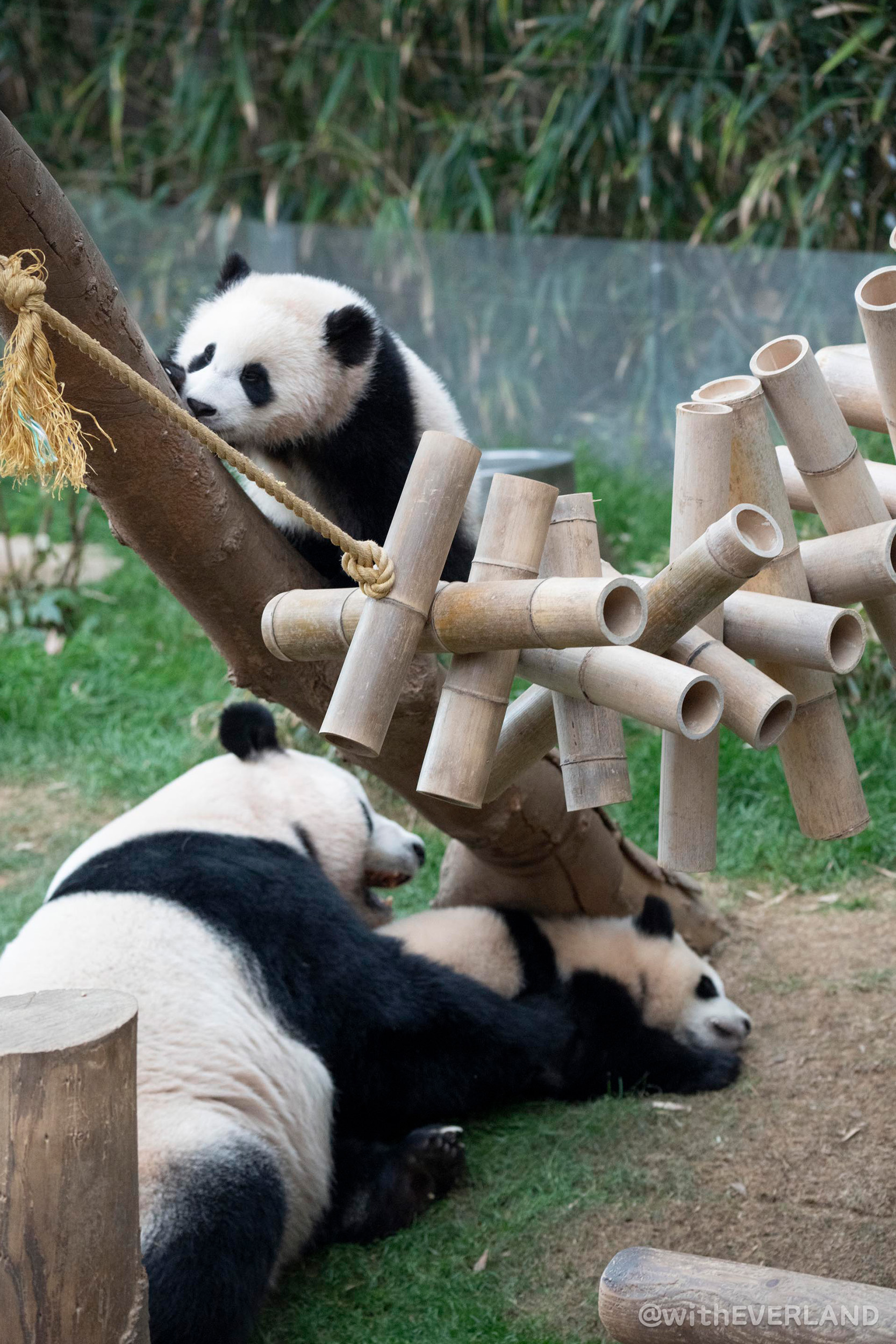 '어부바' 나무에 함께 올라 예쁘게 누워있는 루이, 후이를 가만히 쳐다보니