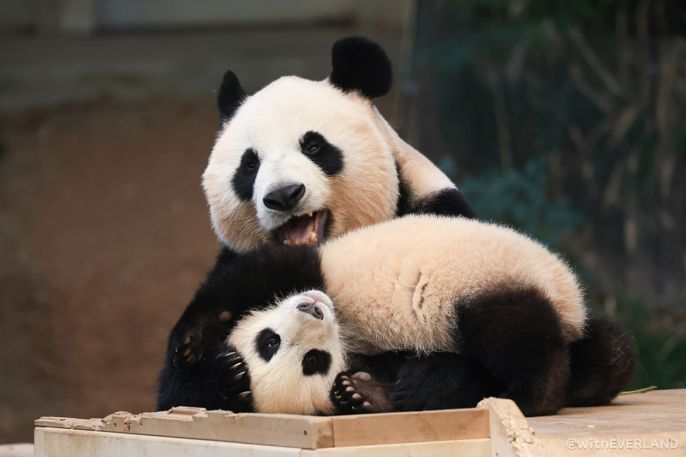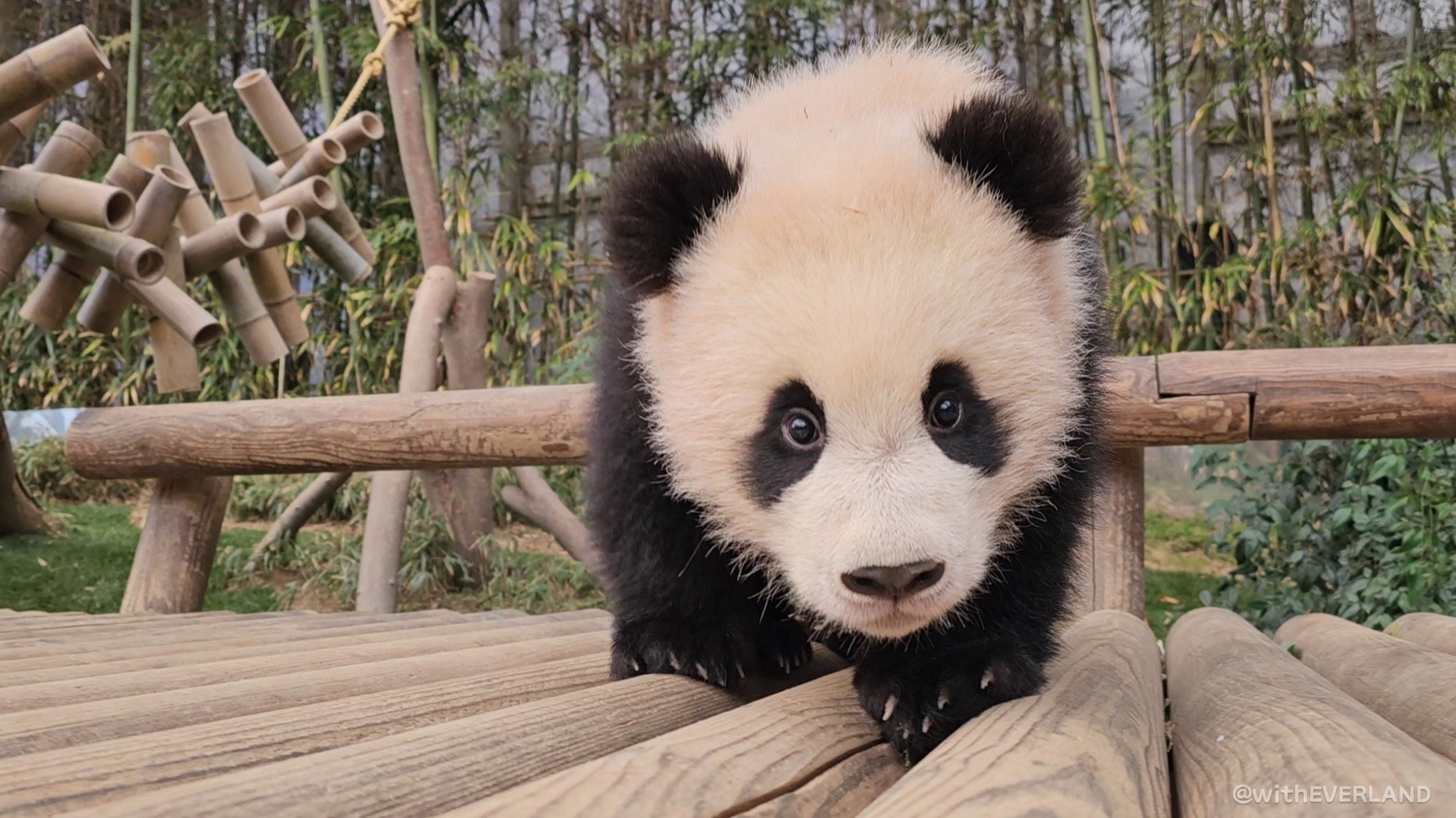 푸바오 언니가 지금의 루이,후이 정도의 시기일 때 찍었던 각도로 사진을 촬영해 보았어요. 꼬맹이들의 모습 너머로 보이는 행복의 순간들에 뭉클해지는 시간이었습니다.