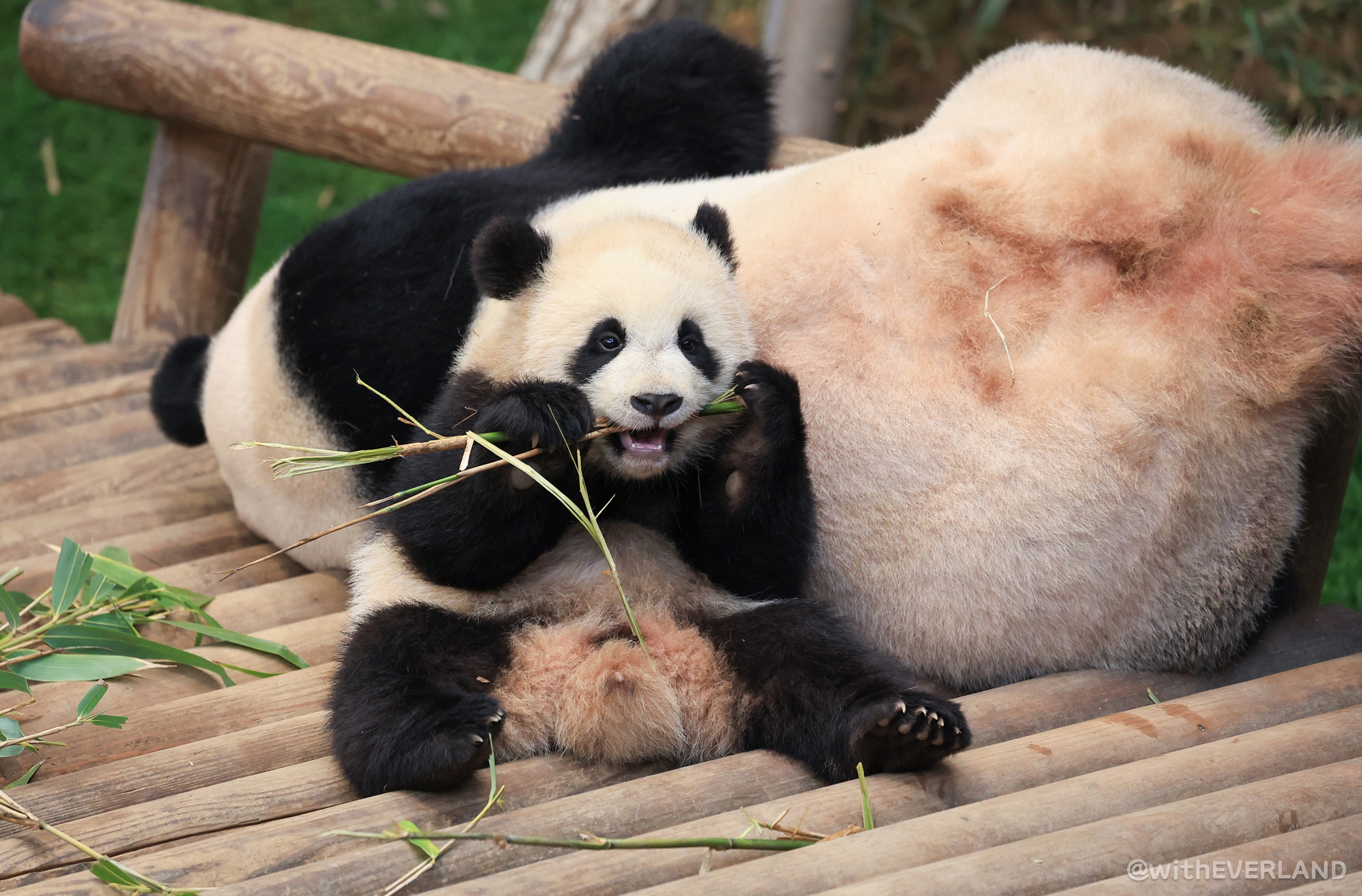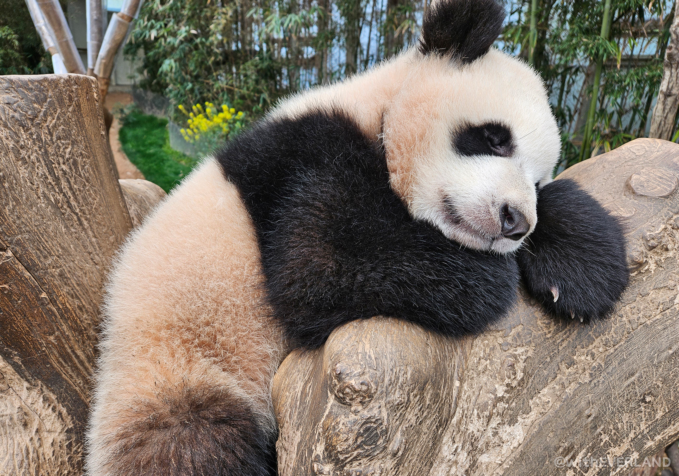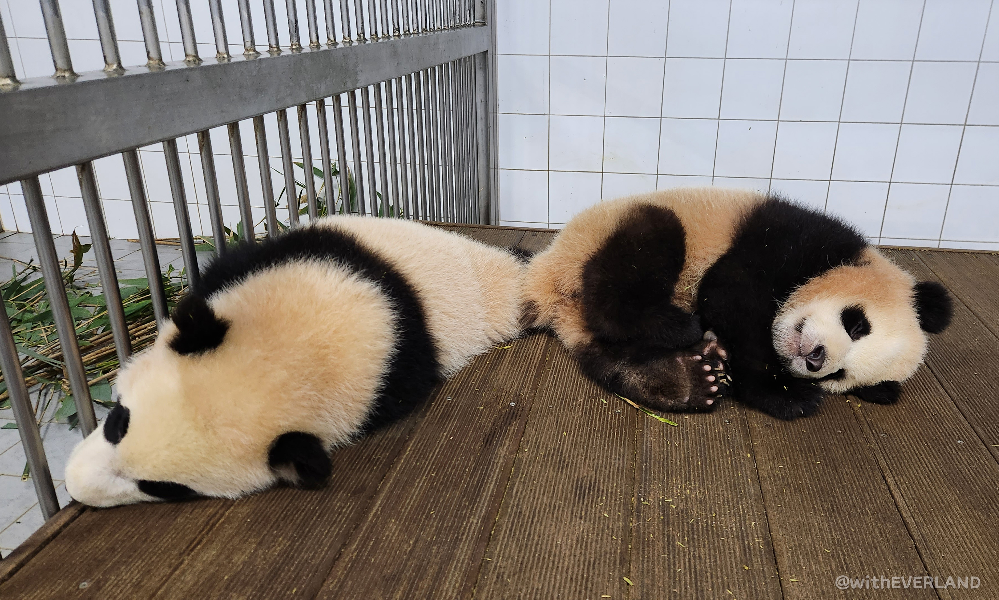 장난꾸러기 꼬맹이들의 공격에서 벗어나 아이바오에게 충전의 시간이 되길 바라면서요.