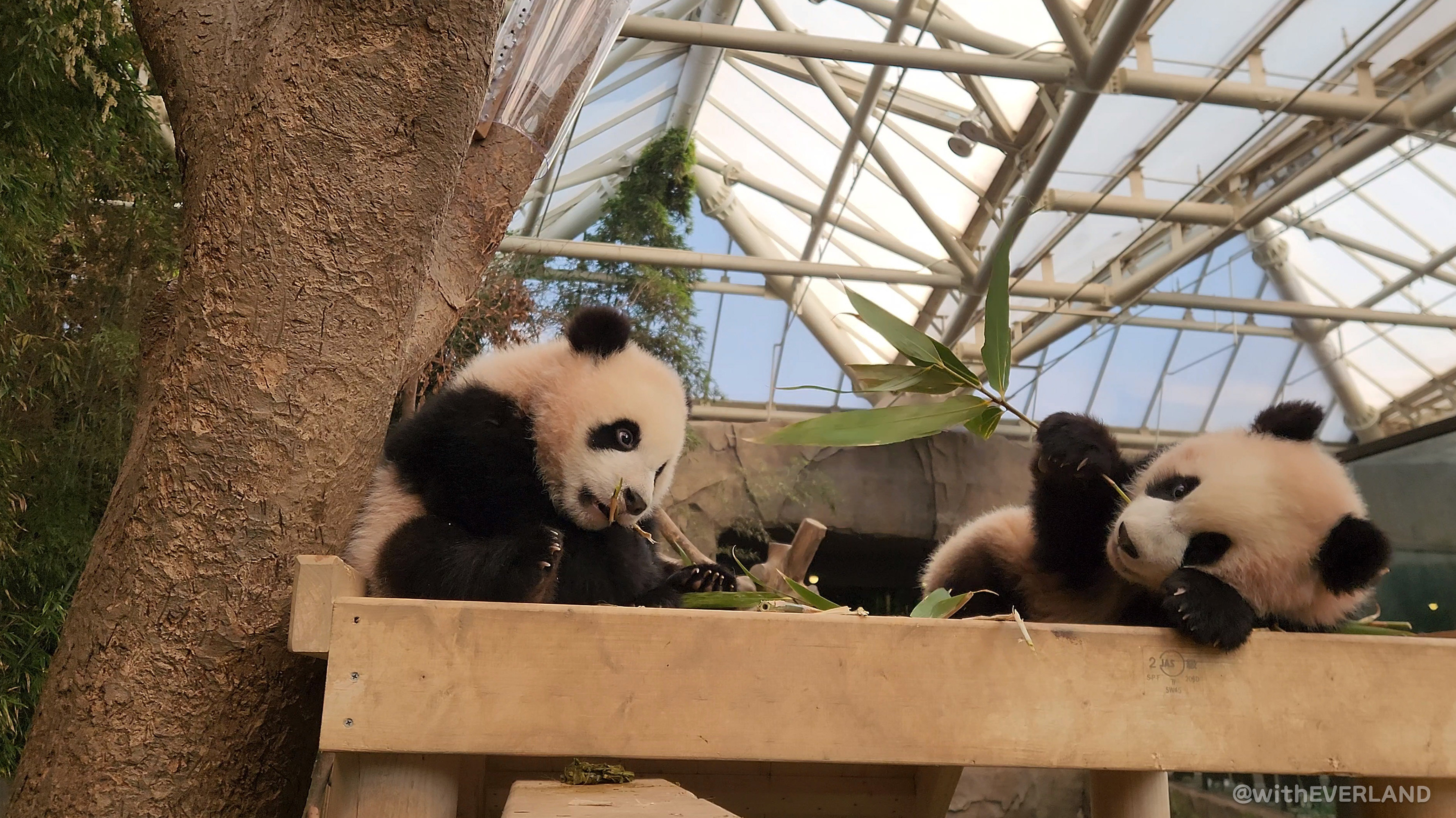 아이바오와 꼬맹이들의 실내방사장 생활이 안정되어 가고 있어요.