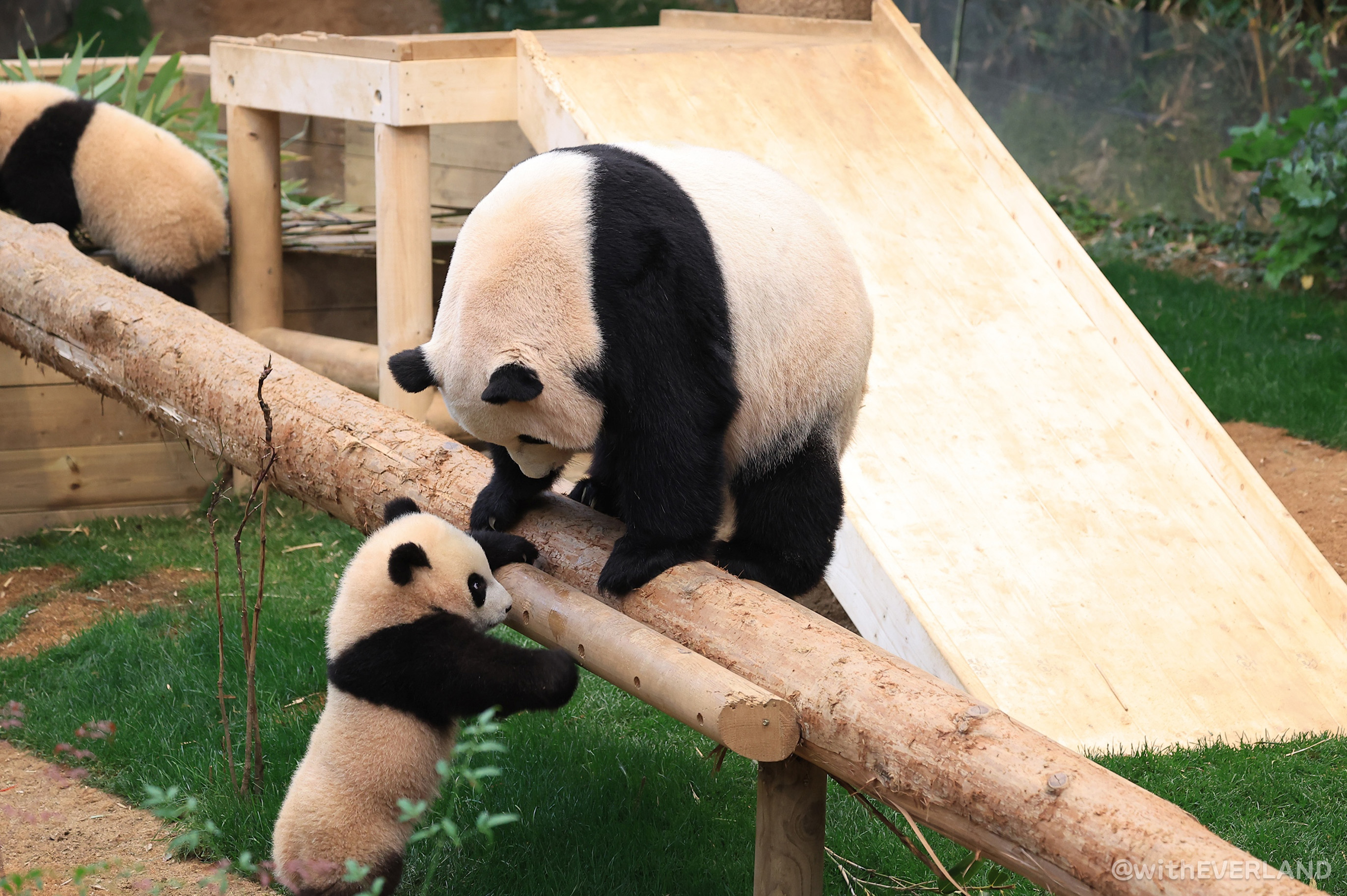 영특한 루이와 후이는 저와 쫓고 쫓기는 놀이를 확실히 이해하고 있는 듯합니다.