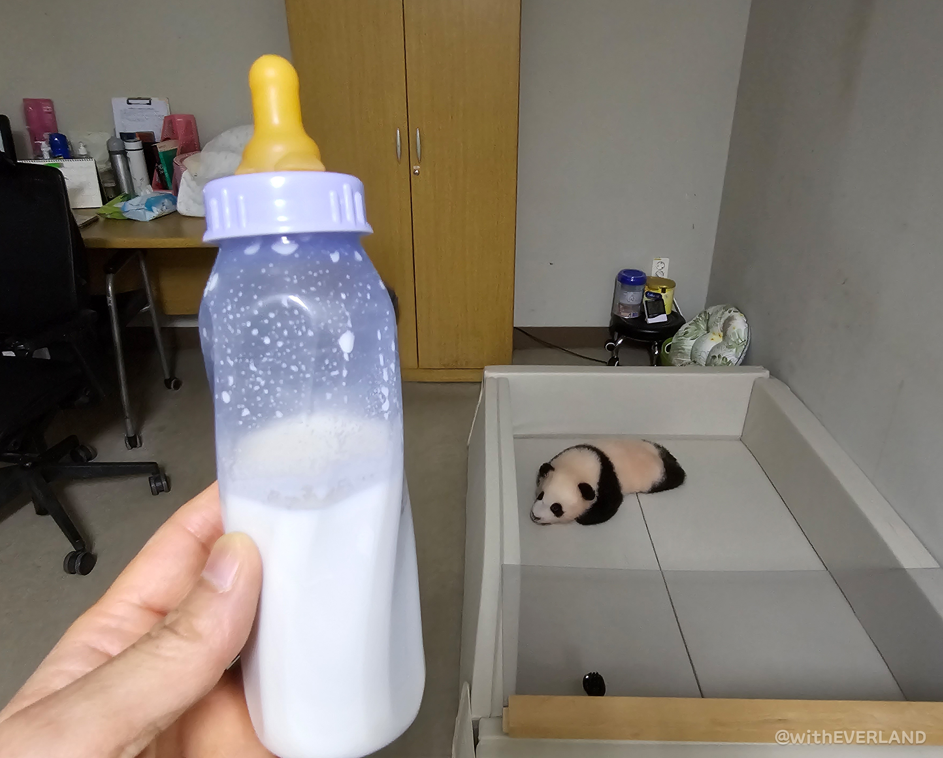포육실의 아기 판다 분유 먹이는 업무를 이어받게 됩니다.