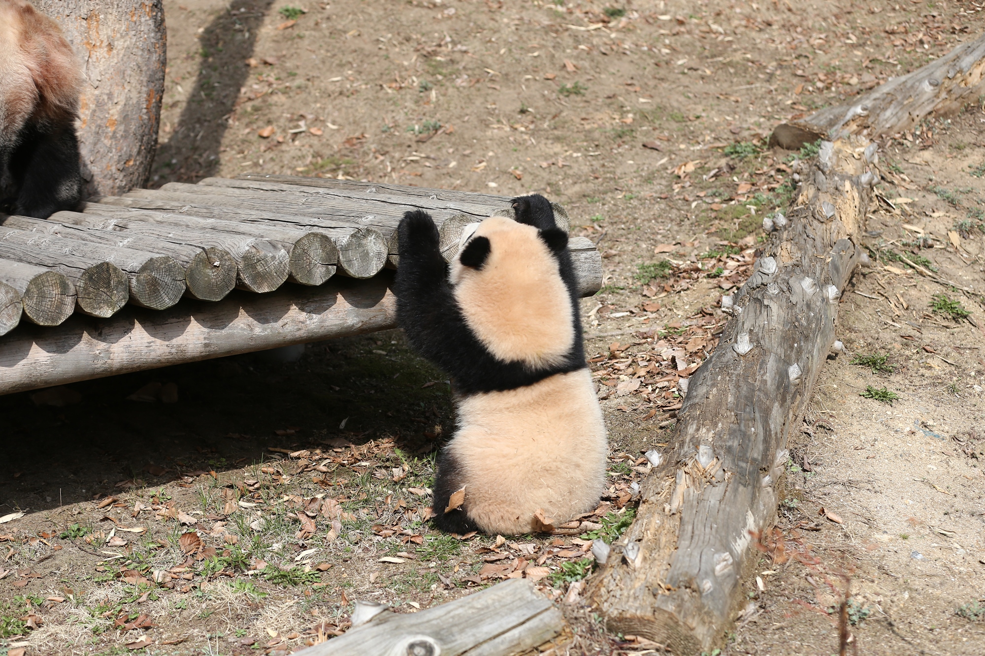 푸바오가 나무 위에 올라있을 때 엄마가 올라오려고 하면 엄마를 공격해 못올라오게 하는 경우도 있고, 반대로 엄마 아이바오가 나무 위에 올라있을 때 자신을 올라오지 못하게 막는 엄마를 밀며 올라가는 등의 행동을 많이 볼 수 있어요.