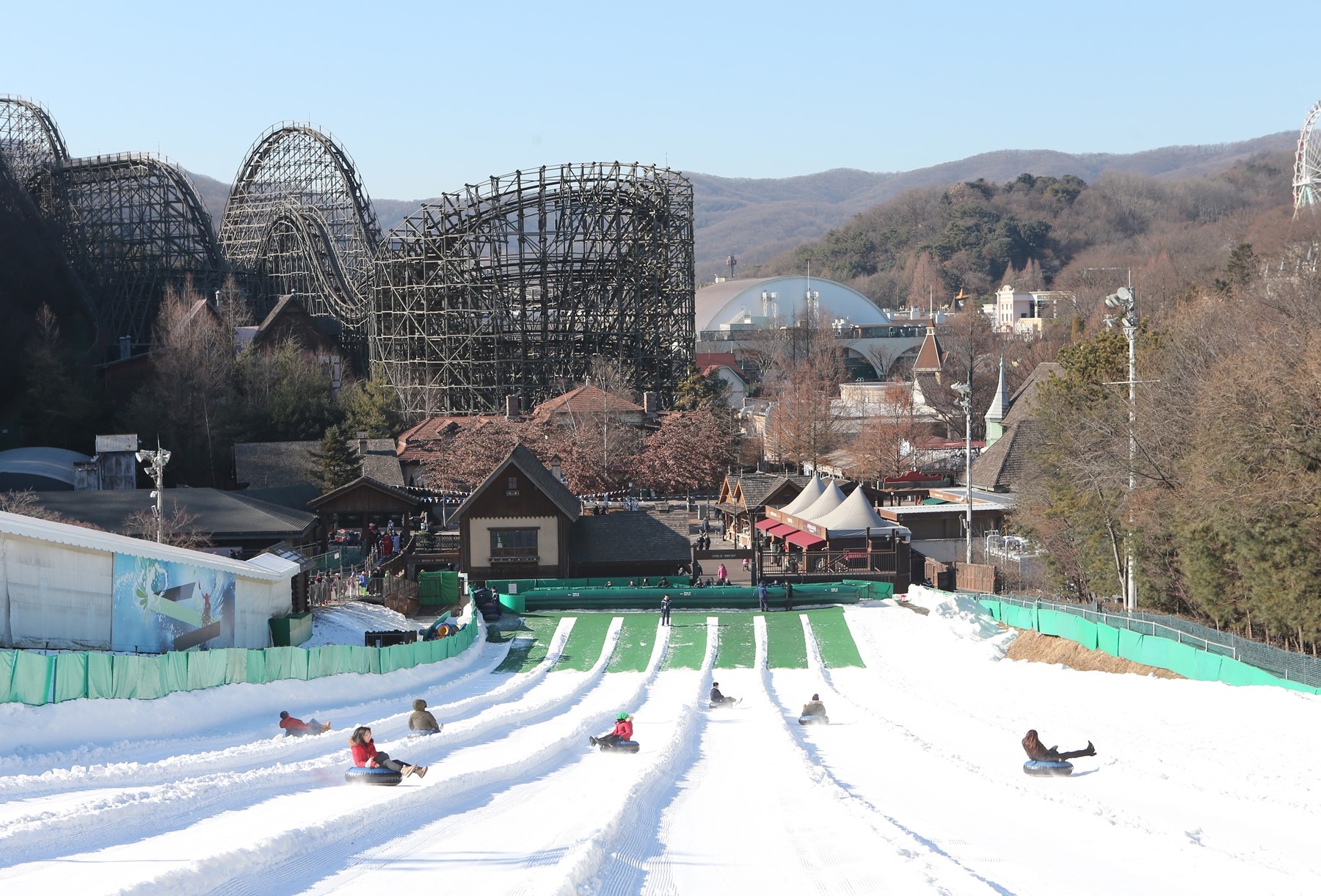또한 에버랜드에는 튜브를 직접 들고 다닐 필요없이 슬로프 상단까지 운반해주는 튜브이송대, 눈 턱으로 만든 전용 레인, 충격방지용 에어바운스 등 눈썰매를 더욱 편리하고 안전하게 이용할 수 있도록 다양한 시설이 마련돼 있다.