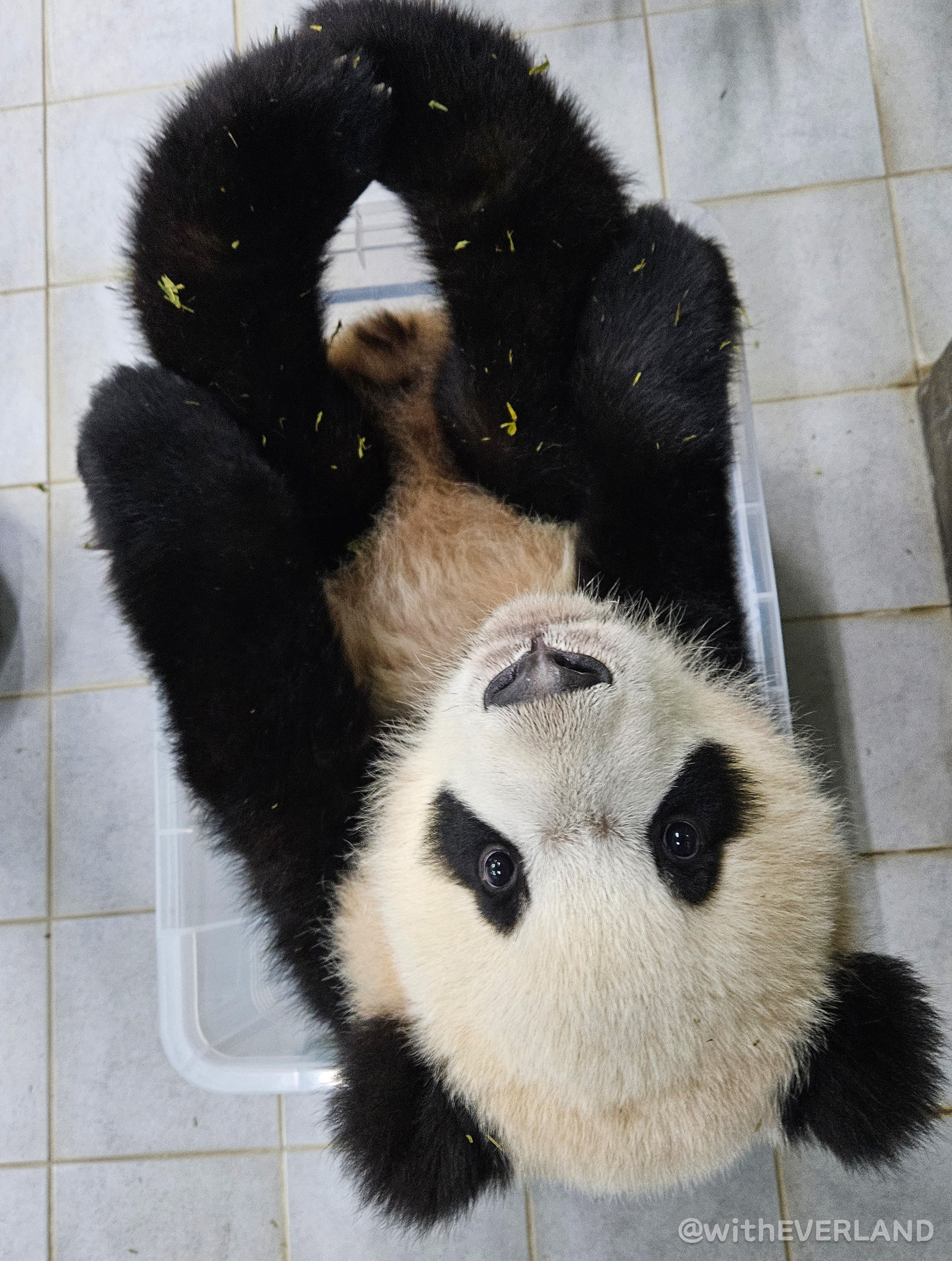 개구쟁이 후이는 엎치락뒤치락하는 모습이 푸바오 언니처럼 하늘을 나는 꿈을 꾸는 것 같기도 하고요.