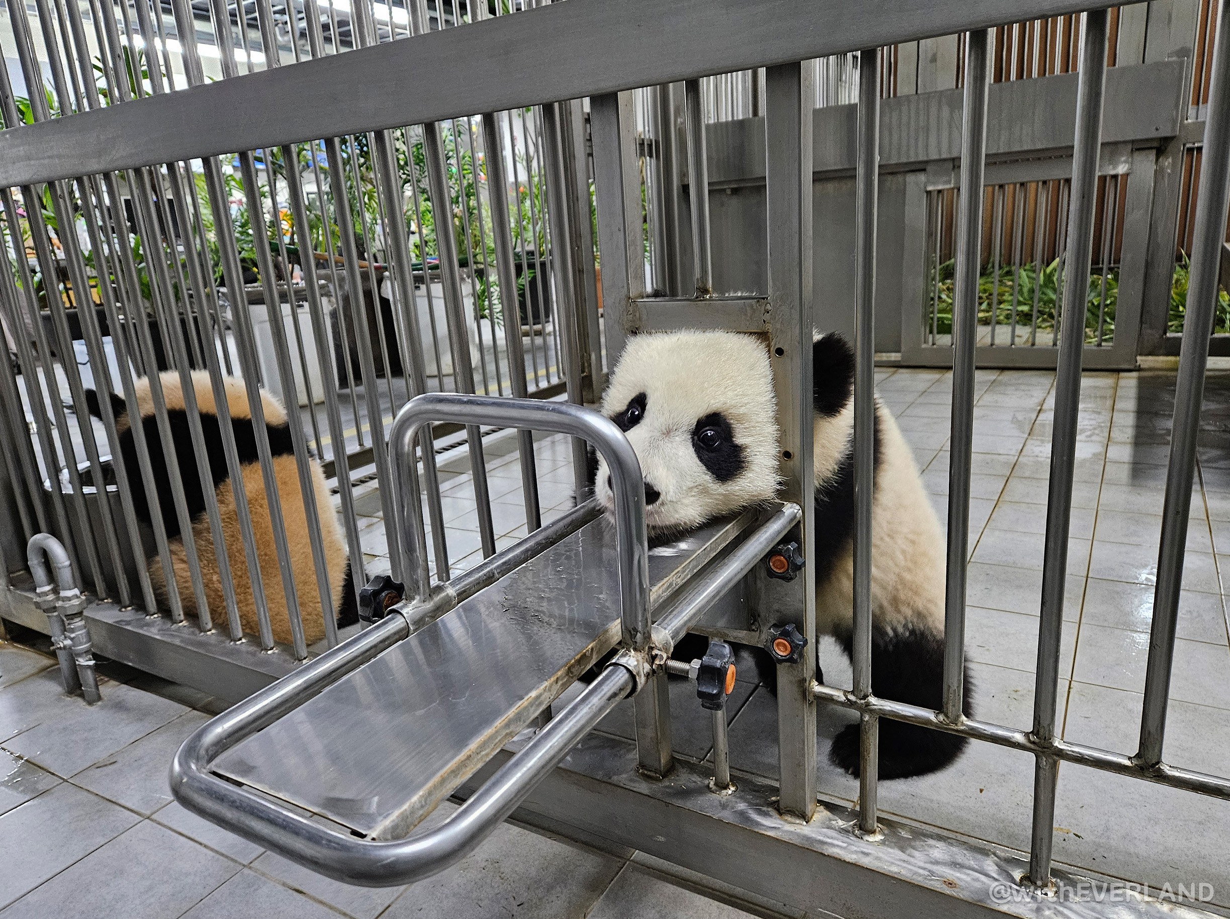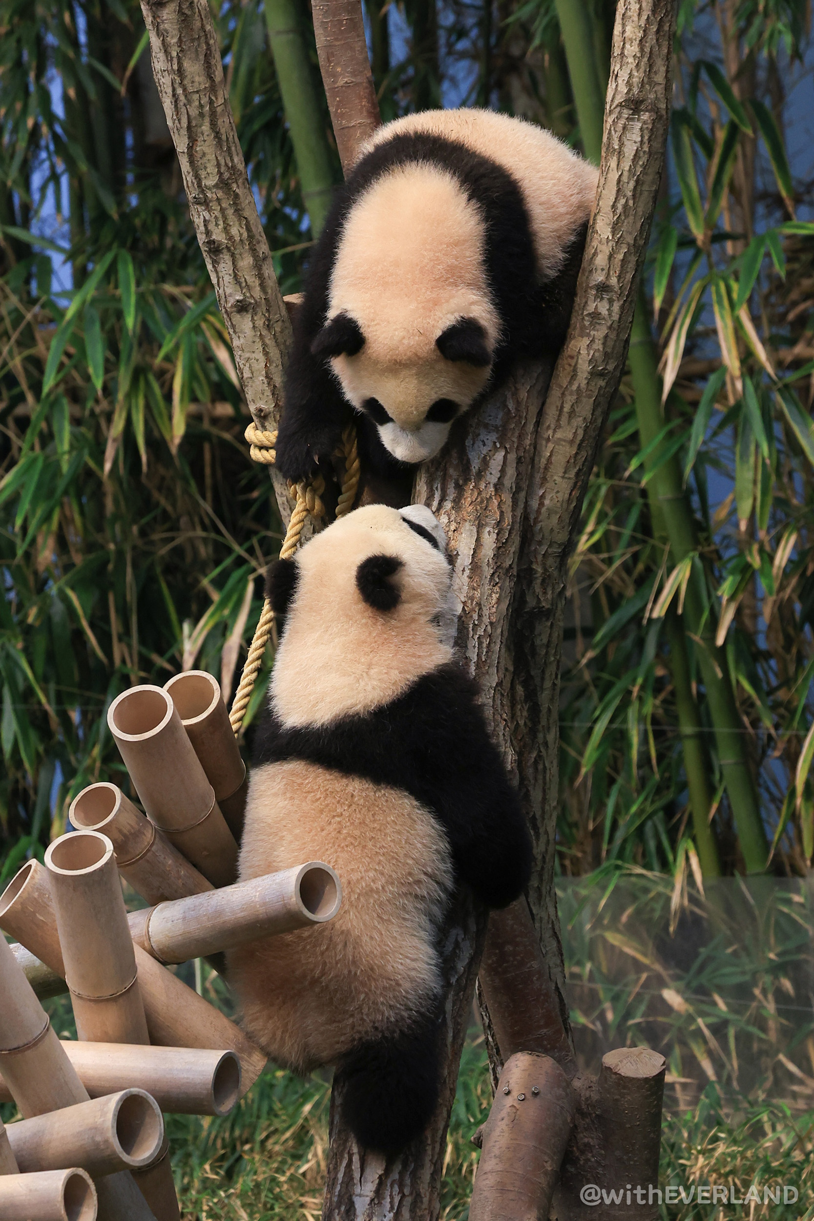 태어날 당시 각각 180g, 140g에 불과했던 쌍둥이 판다는 생후 약 8개월이 지난 현재 몸무게가 20kg으로 늘어나며 폭풍 성장중이다.