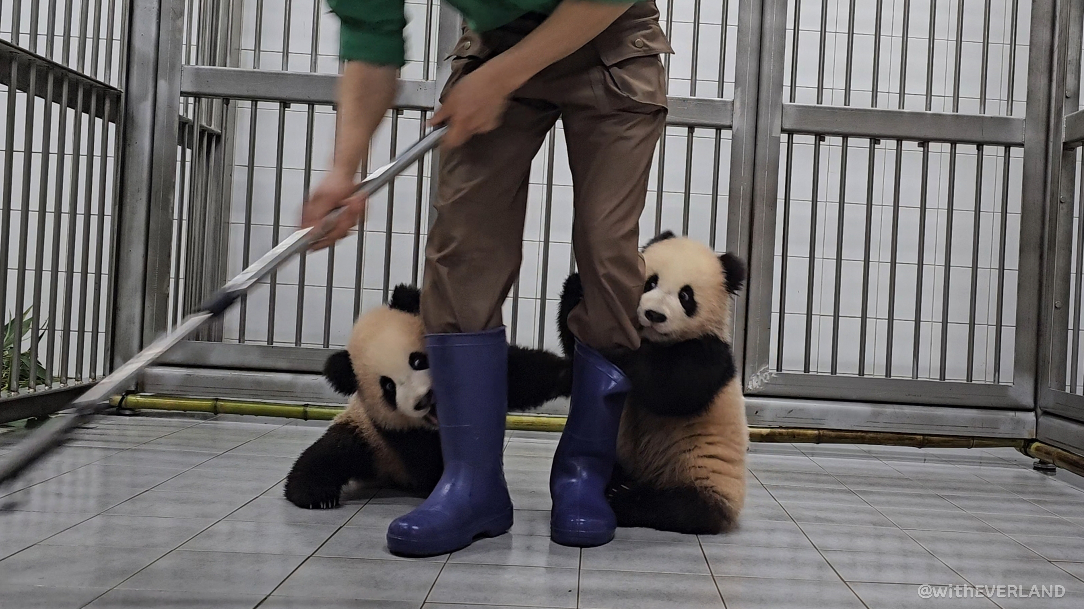 저는 아이바오가 대나무를 먹는 동안 꼬맹이들이 사고를 쳐서 엄마를 긴장시키지 않도록 알게 모르게 도움을 주기도 합니다.