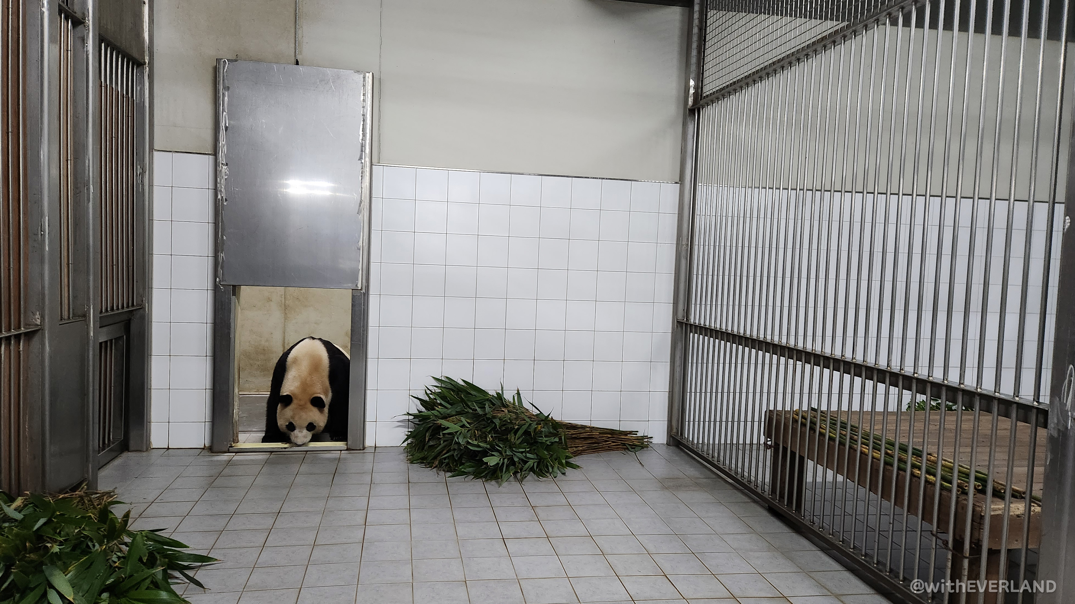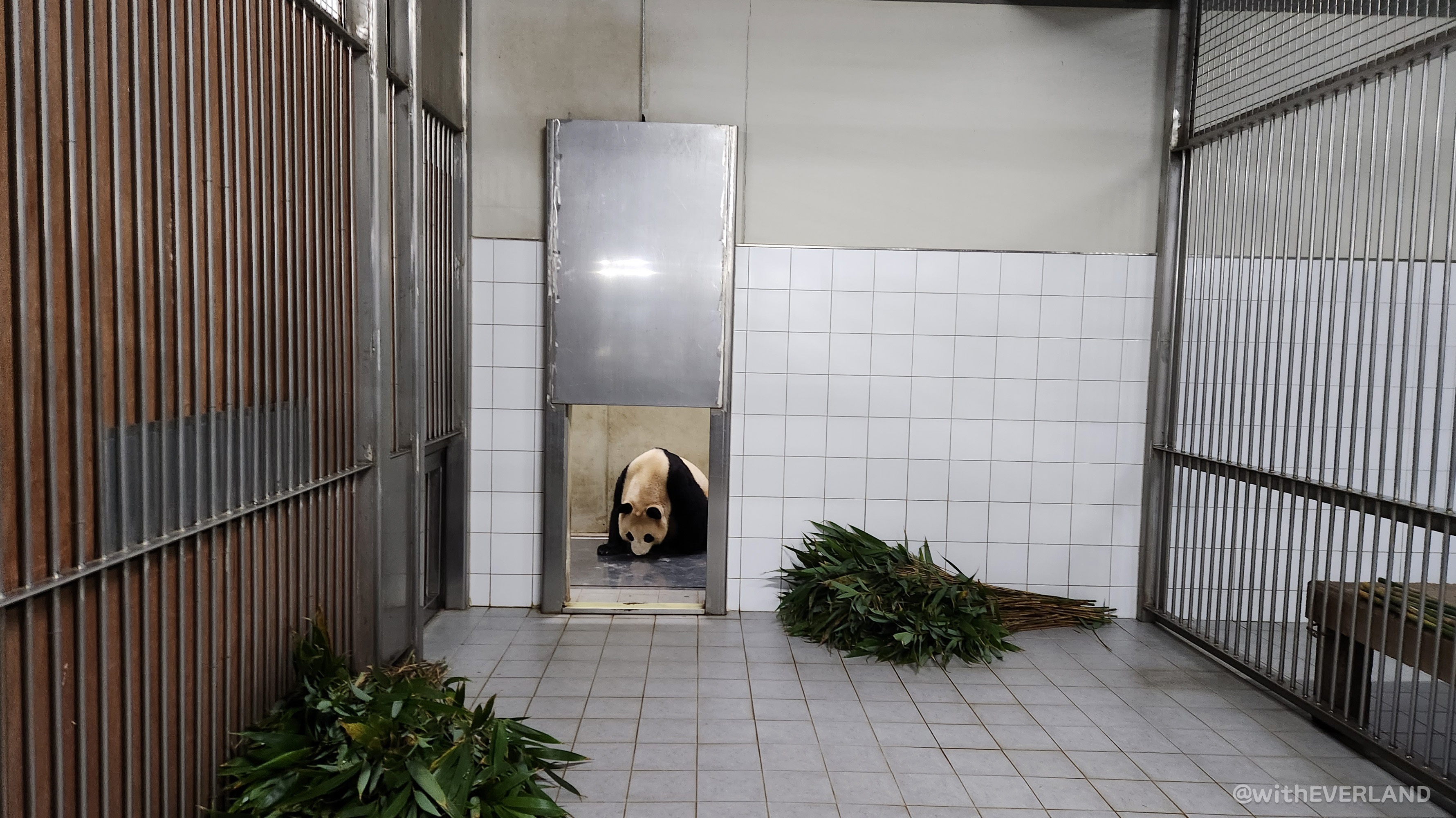 10시가 되면 쌍둥이는 푸바오 언니의 방을 지나 실내방사장으로의 모험을 떠납니다.